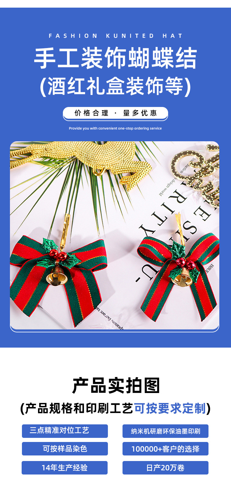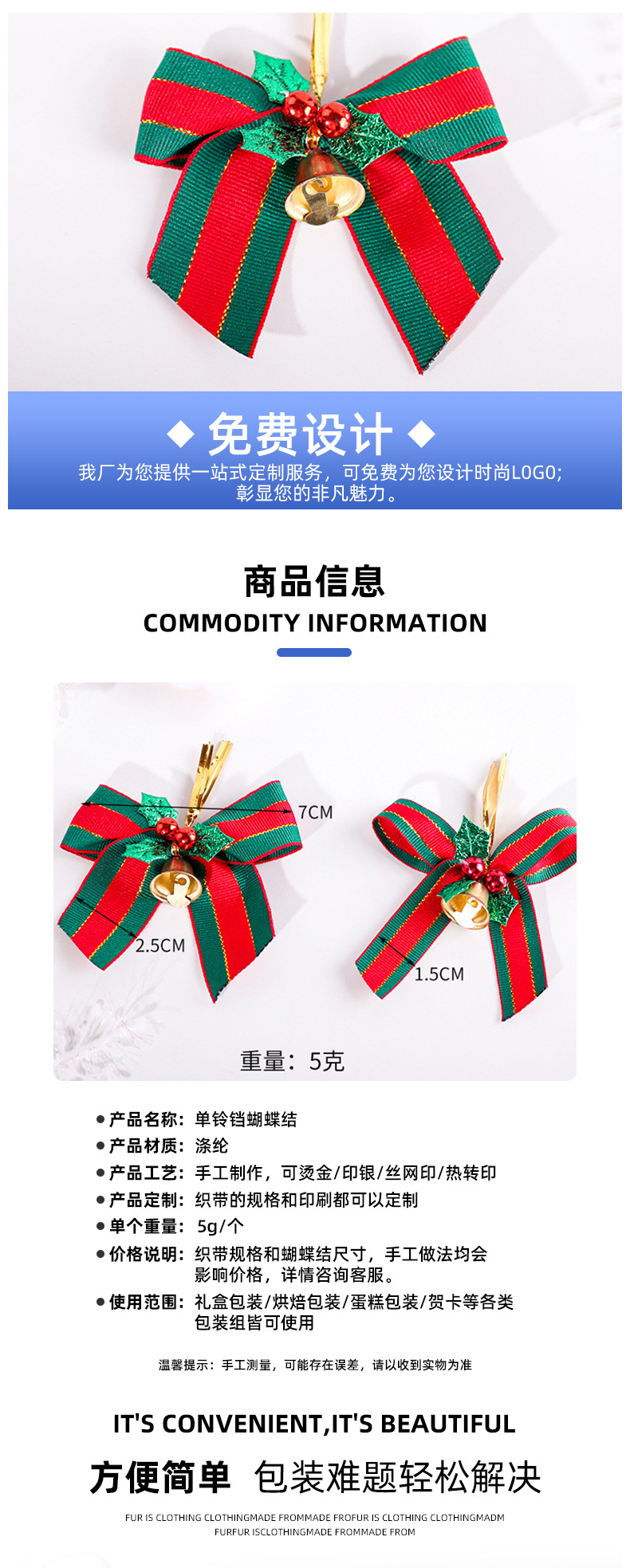 1.5cm christmas red green bow single bell