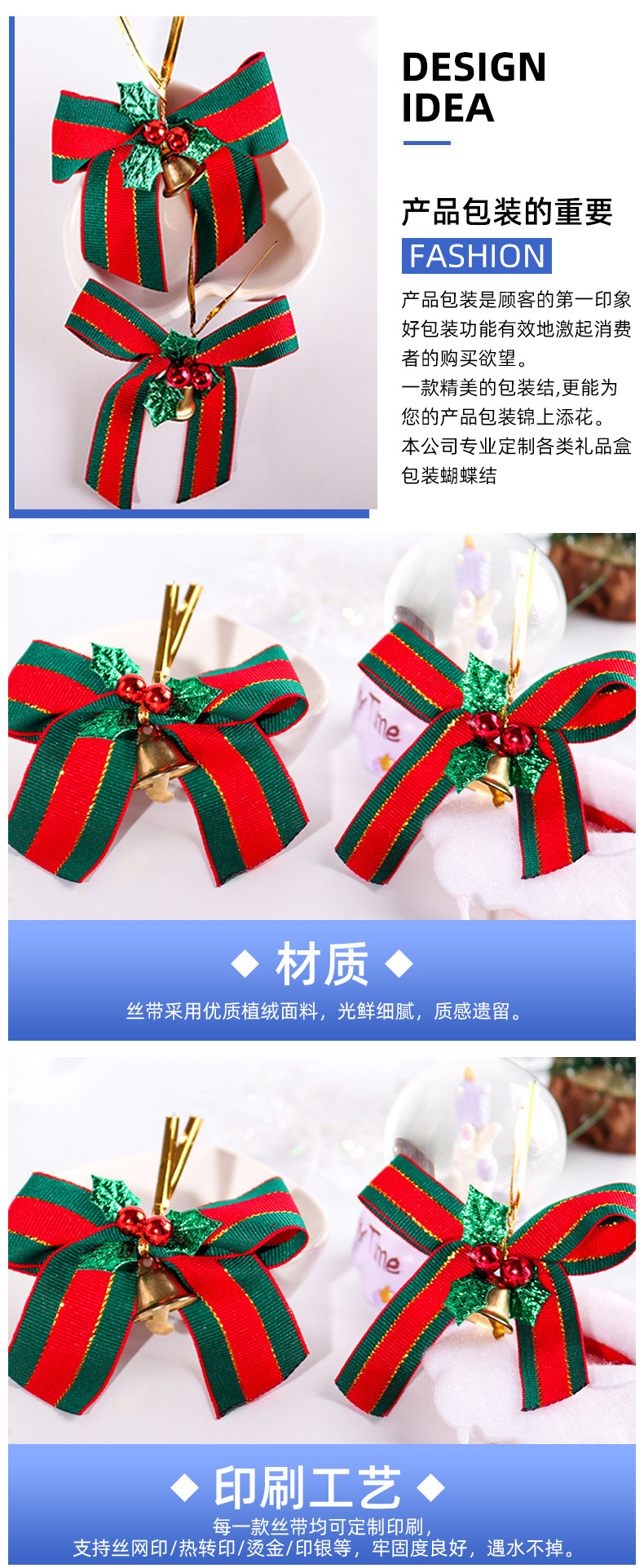 2.5cm christmas red green bow single bell