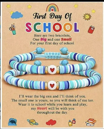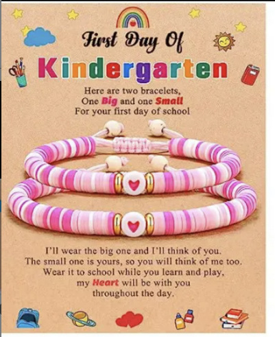 red colorful heart bracelet + kindergarten card