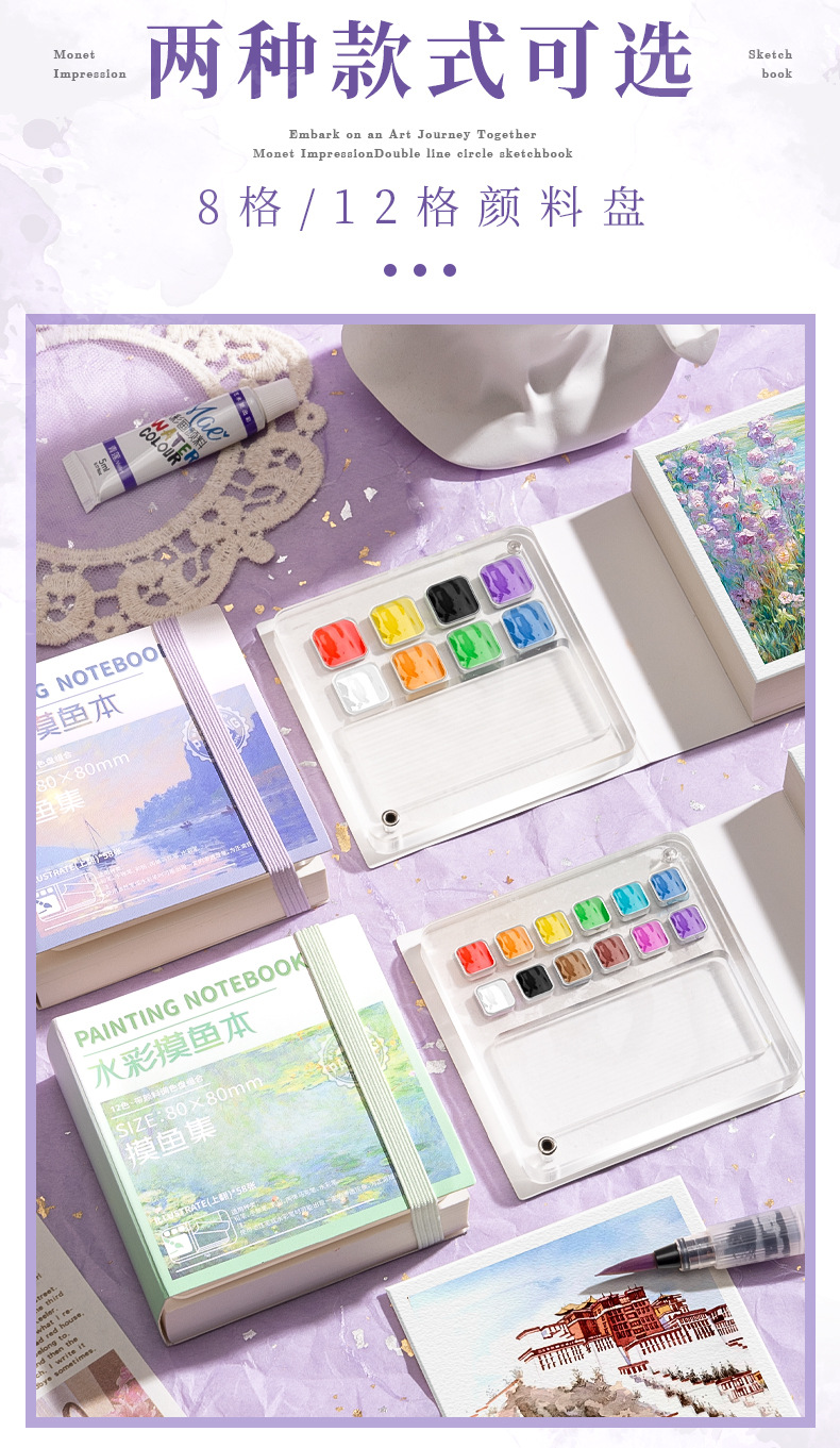 fishing set watercolor notebook-8 colors +12 colors pigment