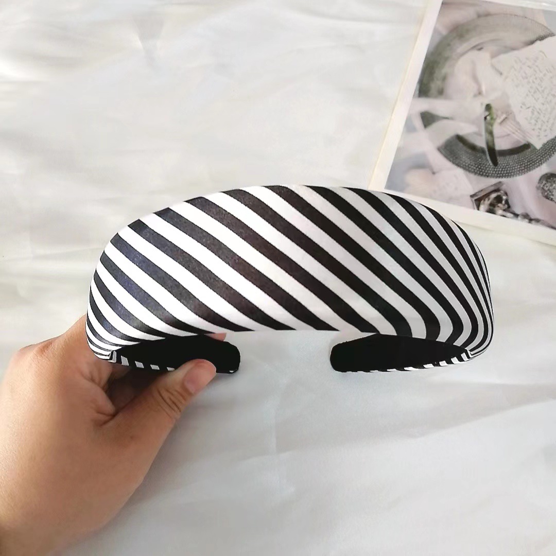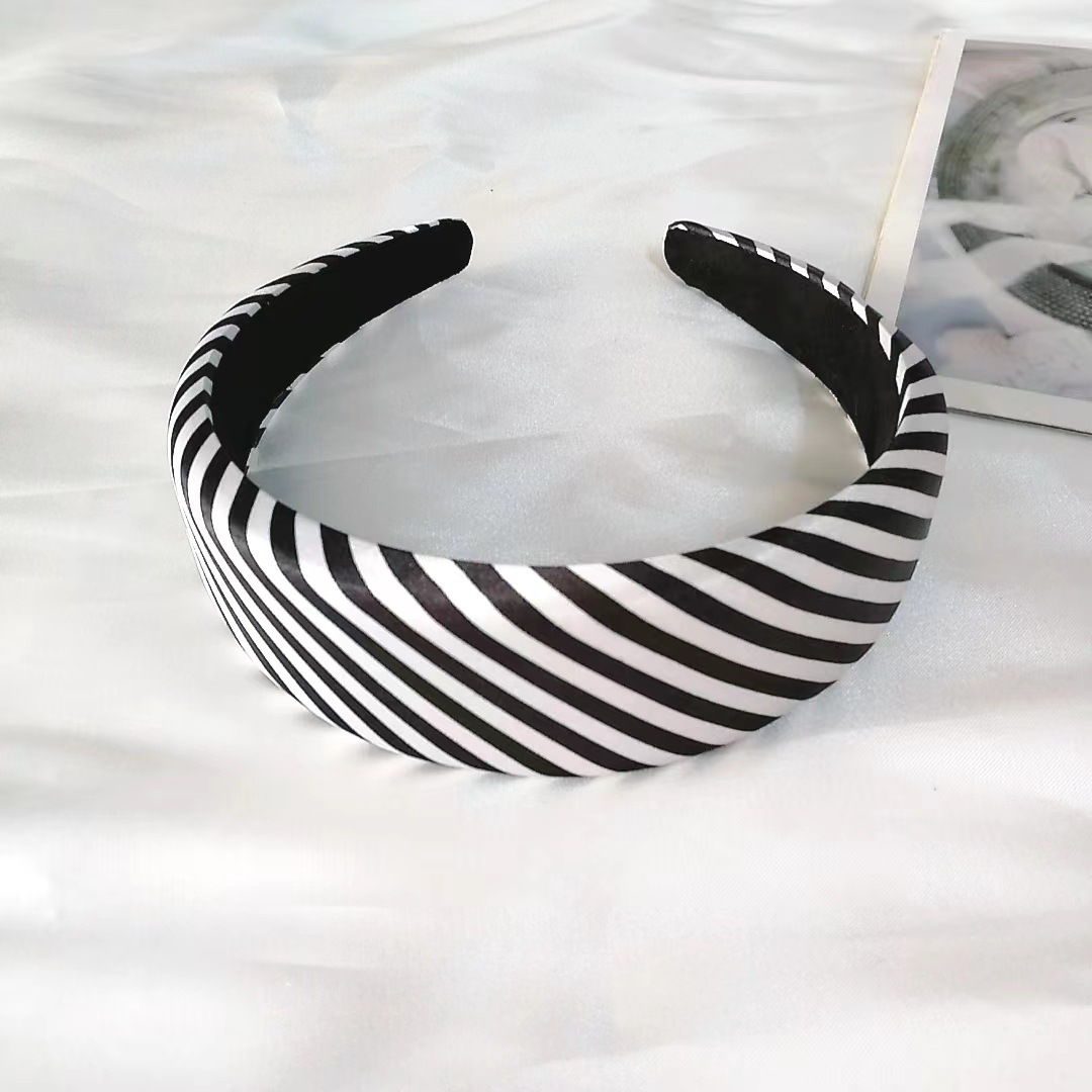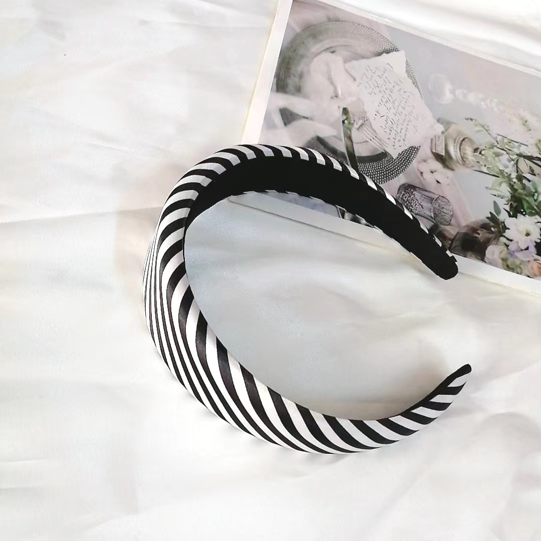 Korean version of retro black and white striped hairband for women