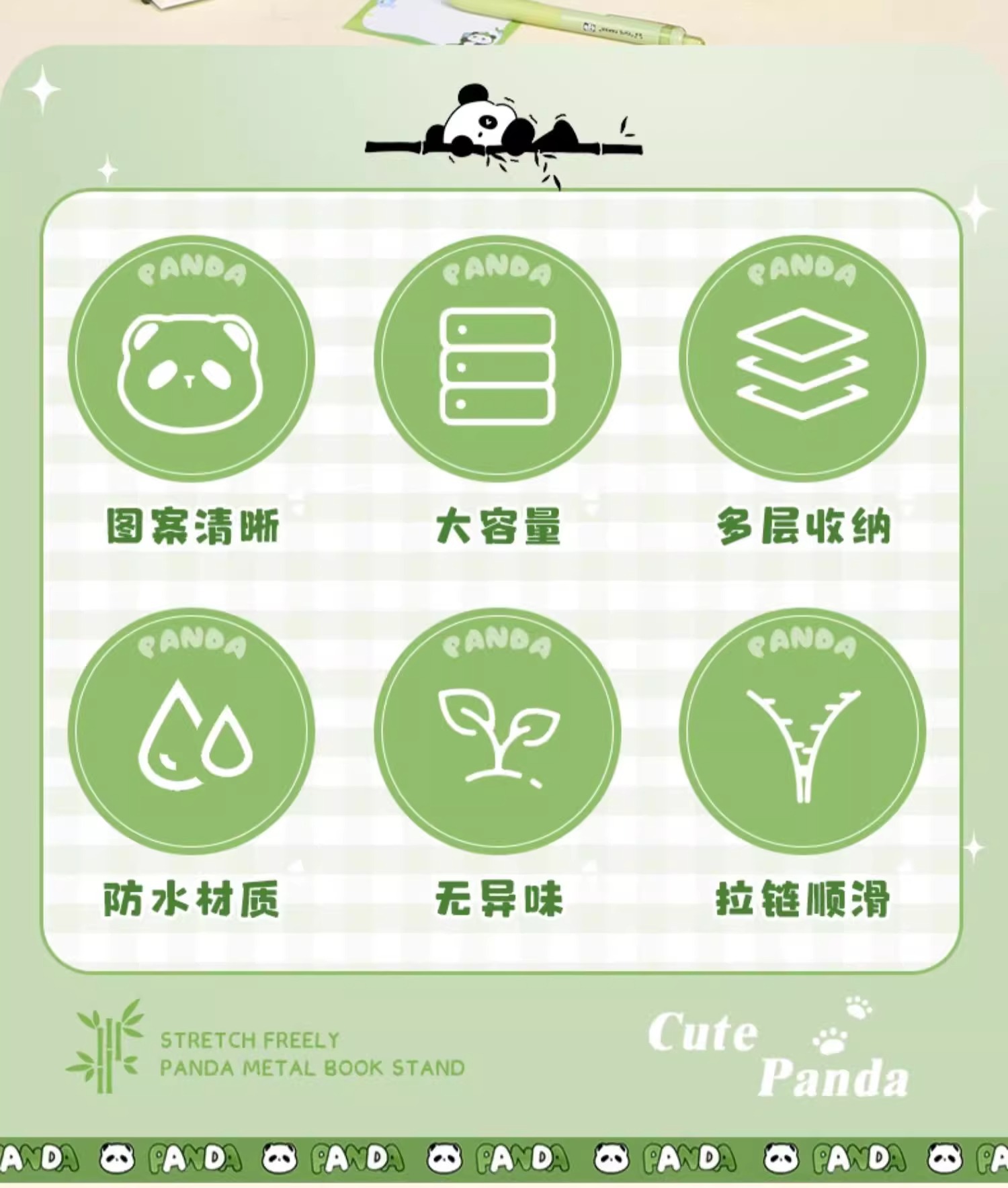 bamboo panda [removable pencil case] with stickers