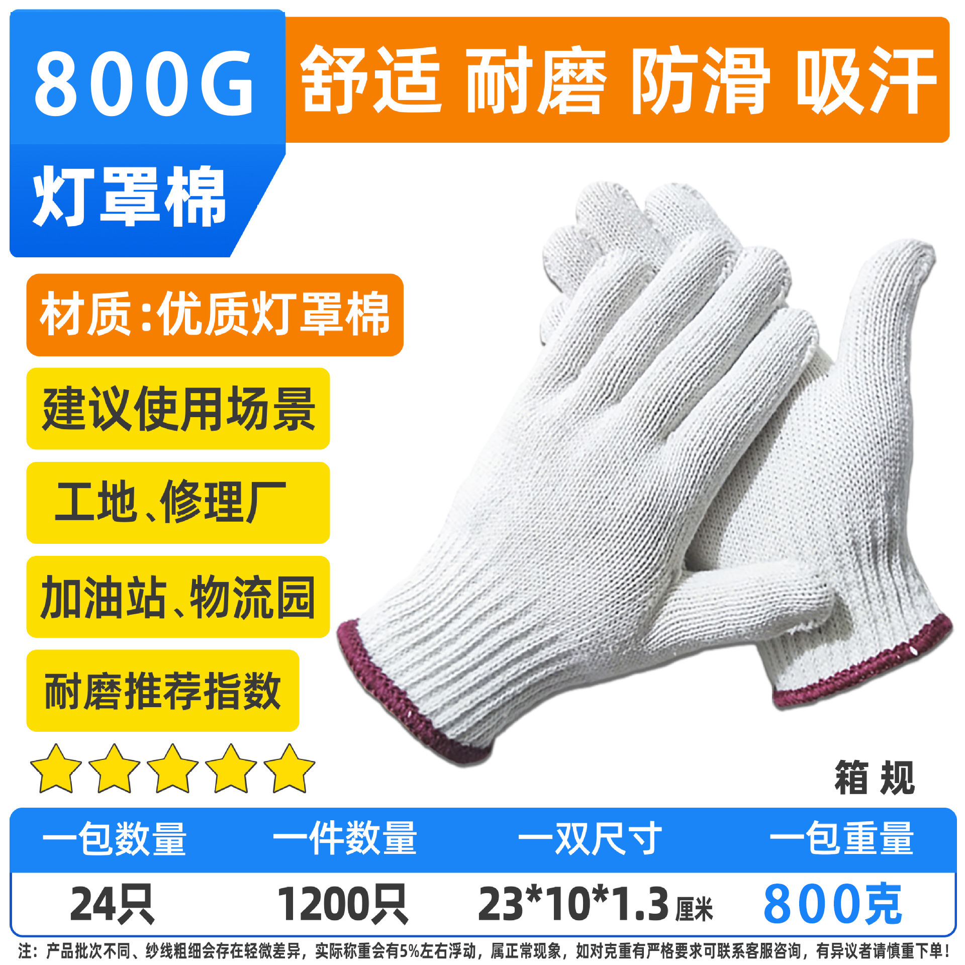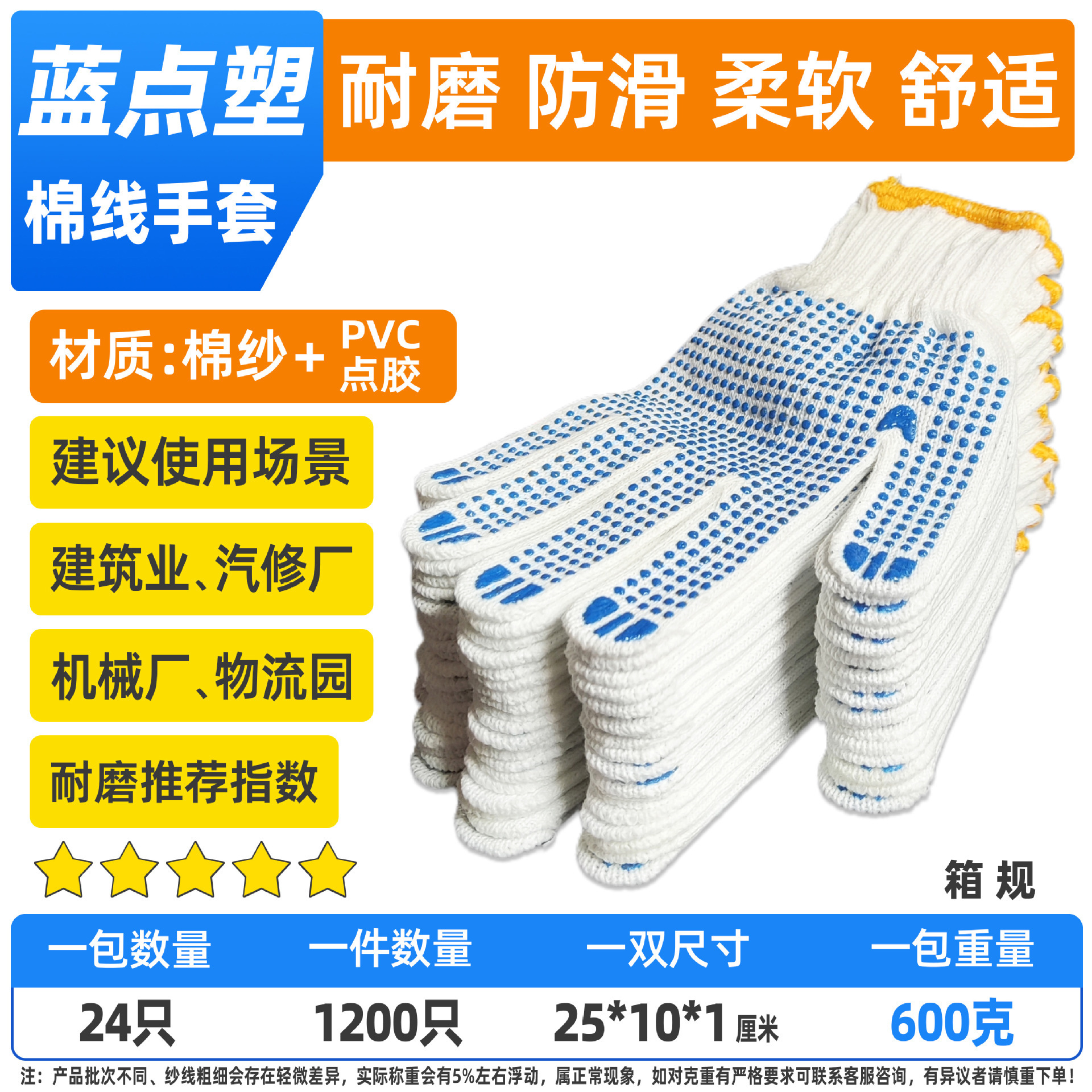 cotton gloves with rubber dimples 600g per piece