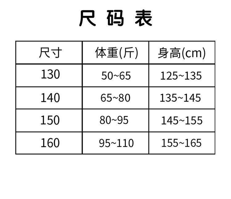 | size 140 [height 135-145cm, weight 32.50 kg-40.00 kg]] | CN¥ 0.0 | 284 piece available |
