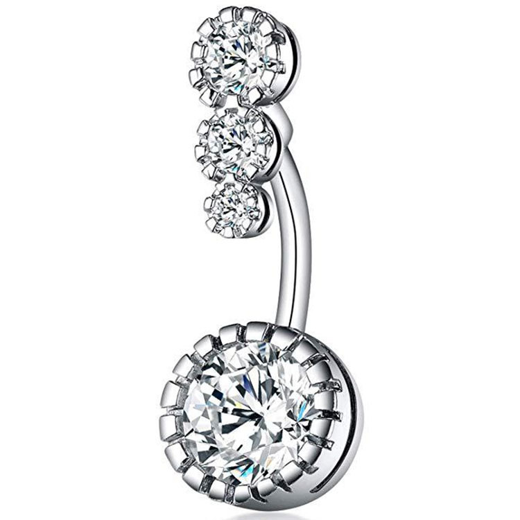european and american new belly button ring 4 diamond zircon navel buckle umbilical ring zircon navel stud piercing jewelry factory in stock
