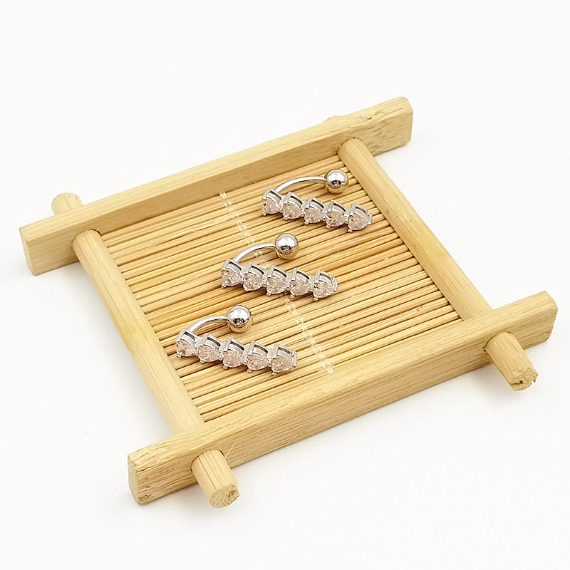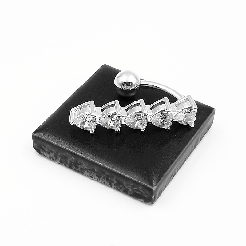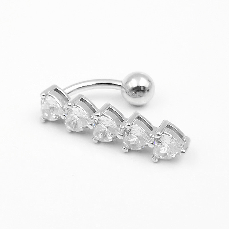 s925 silver belly ring european and american under-cut diamond five small heart-shaped navel stud piercing jewelry cross-border factory wholesale