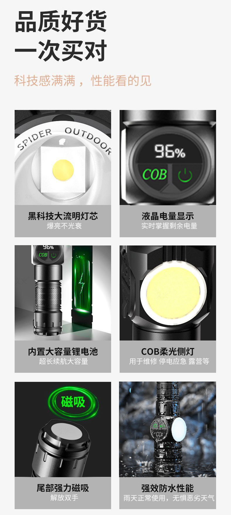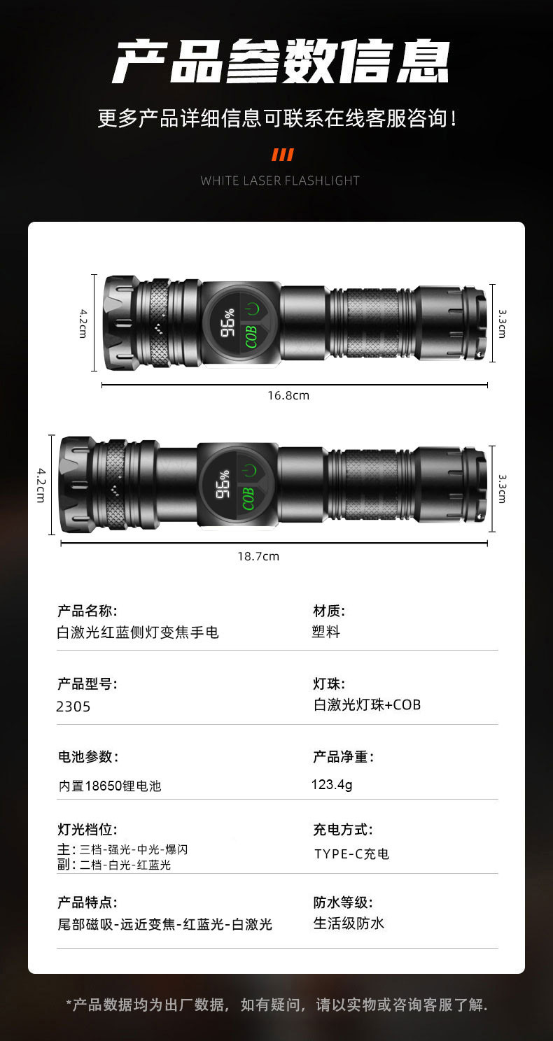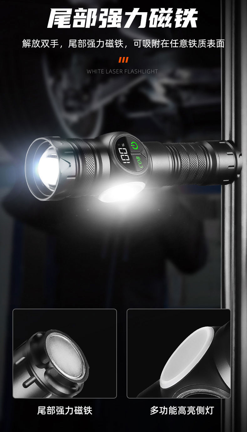 2305-smart digital display flashlight [magnetic + tail rope]]