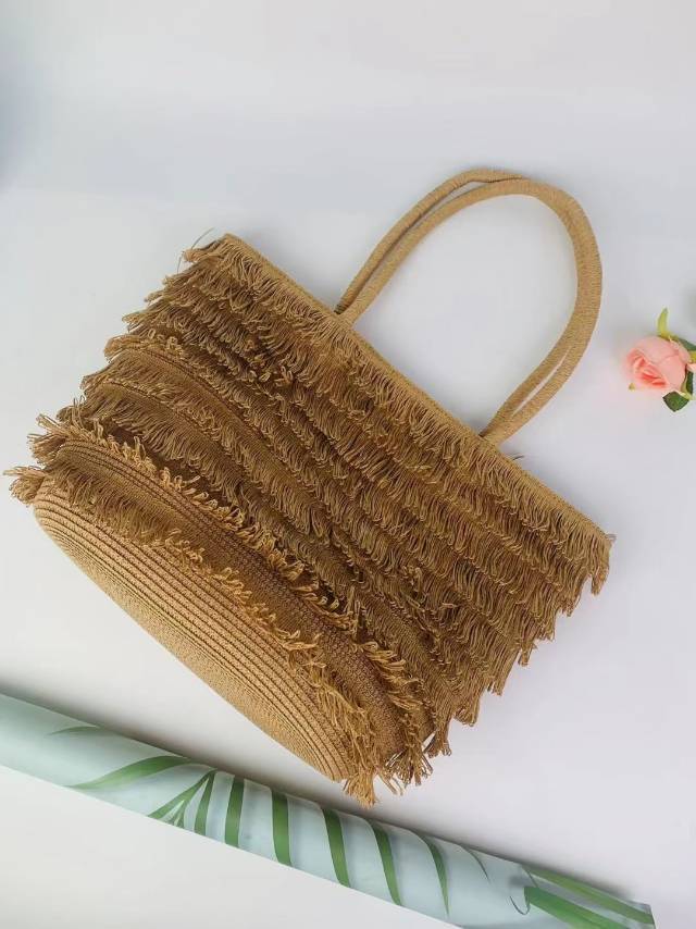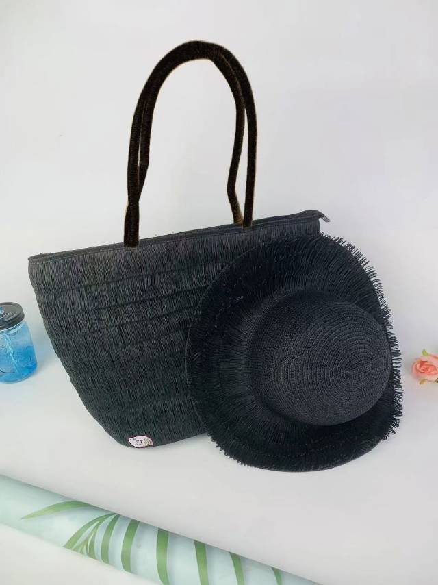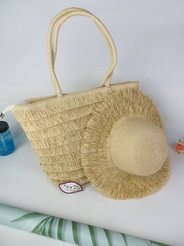 factory direct sales foreign trade wool tassel hat bag two-piece set wide brim hat sun hat straw hat vacation essential