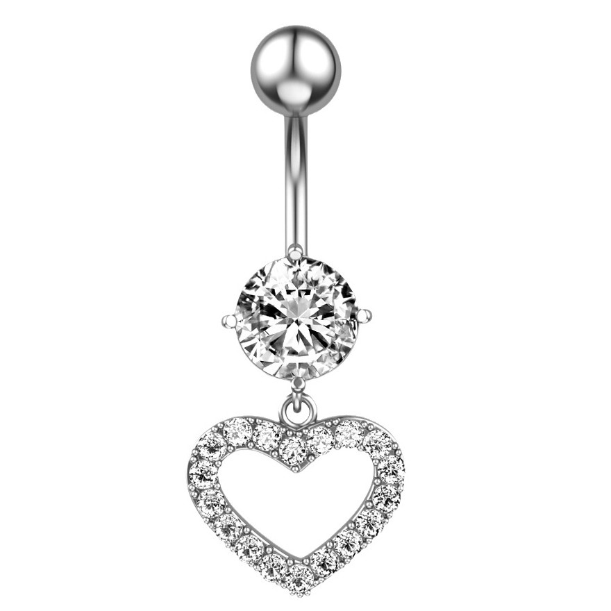 stainless steel double heart-silver white zirconium