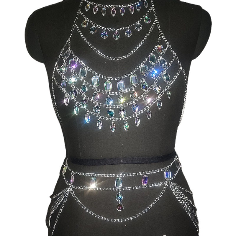 bra european and american style music festival dazzling shiny bra chain suit sexy geometric acrylic body chains s000293