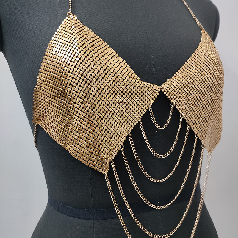 skl000198 party multi-layer metal chain vest charming backless sling women's clothing fashion bra