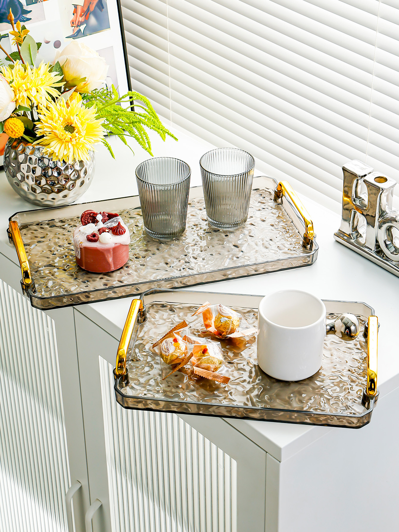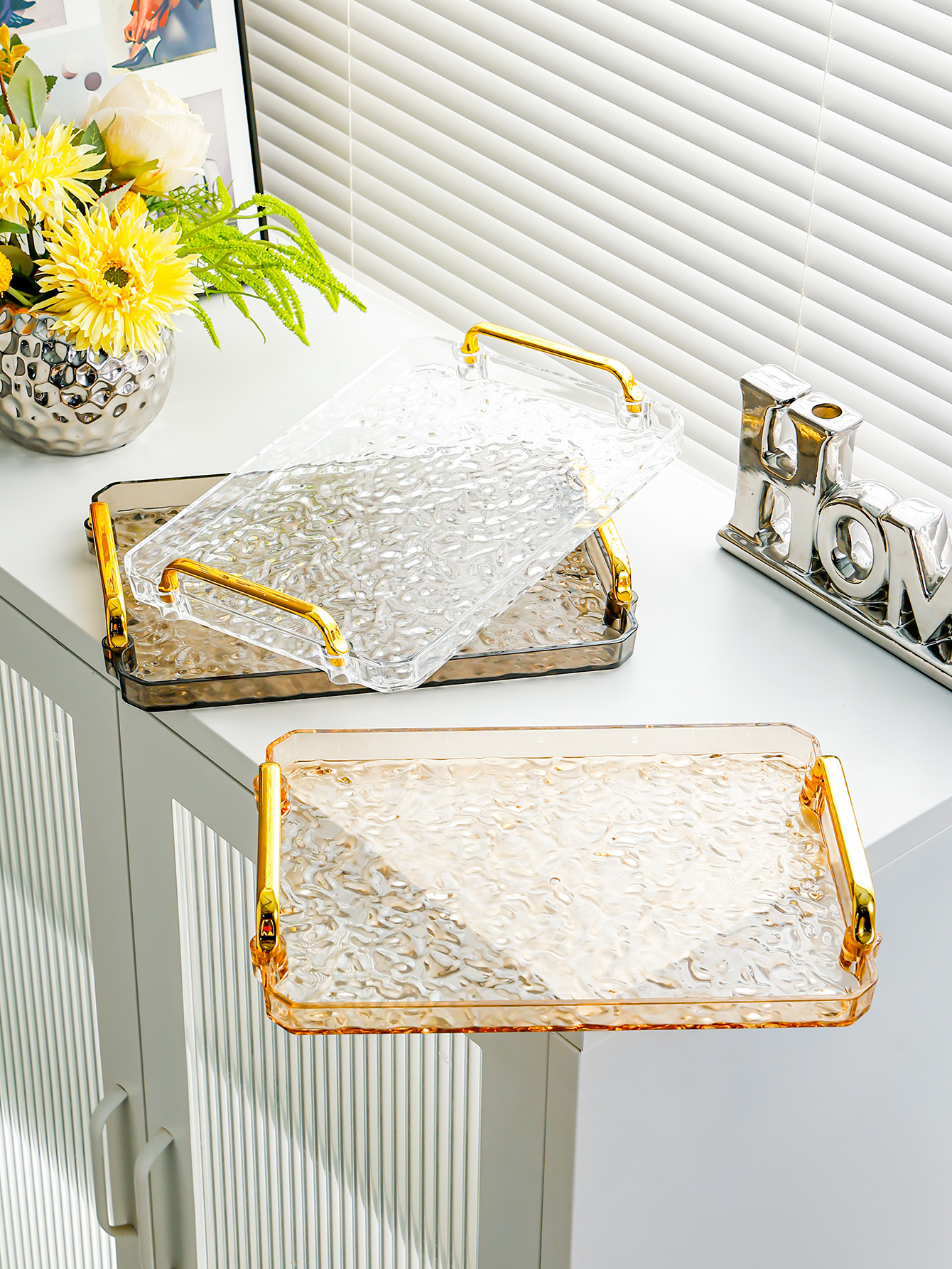 smoke gray-water ripple plate [medium] gold handle