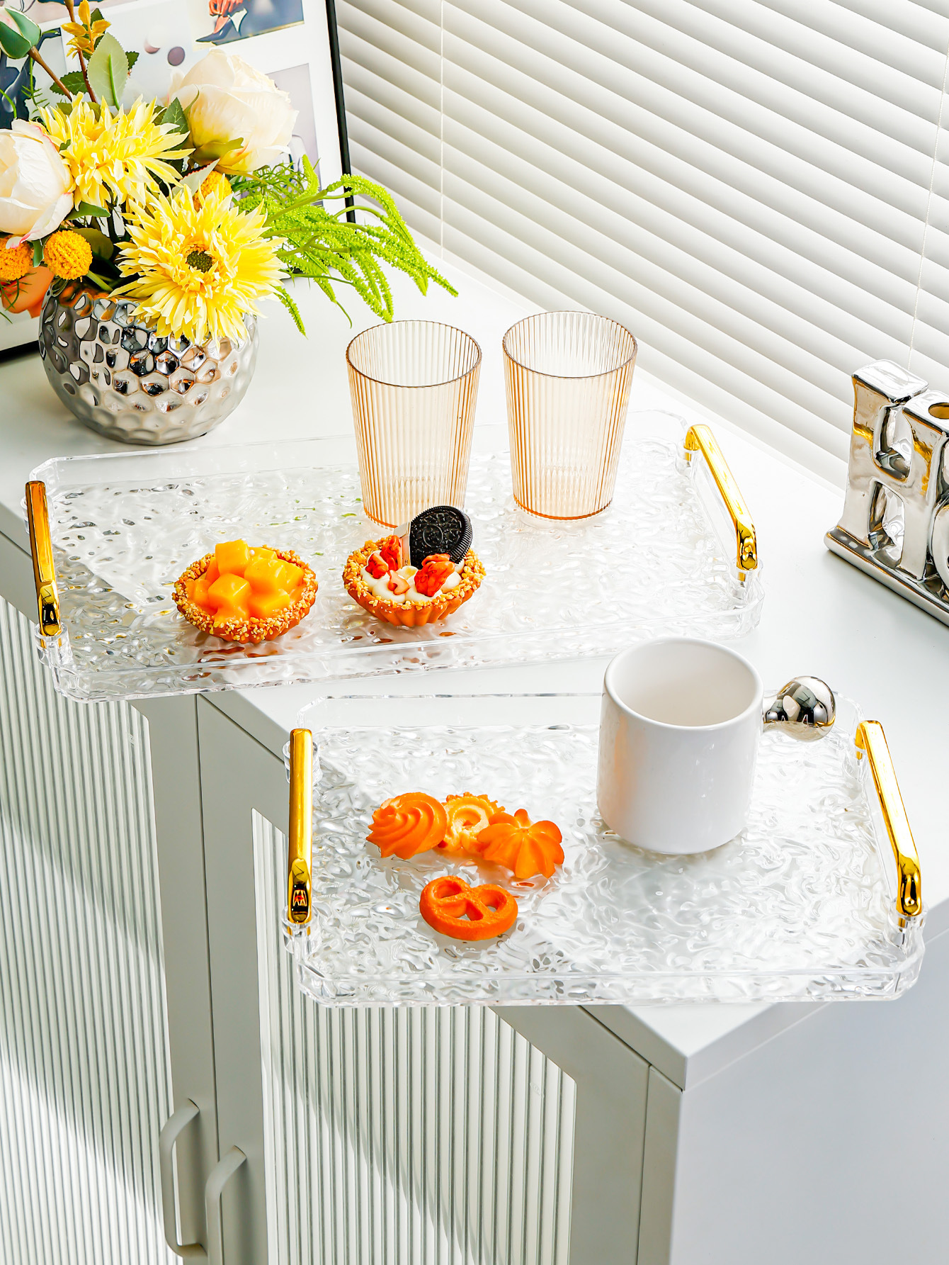 transparent color-water ripple plate [medium] gold handle