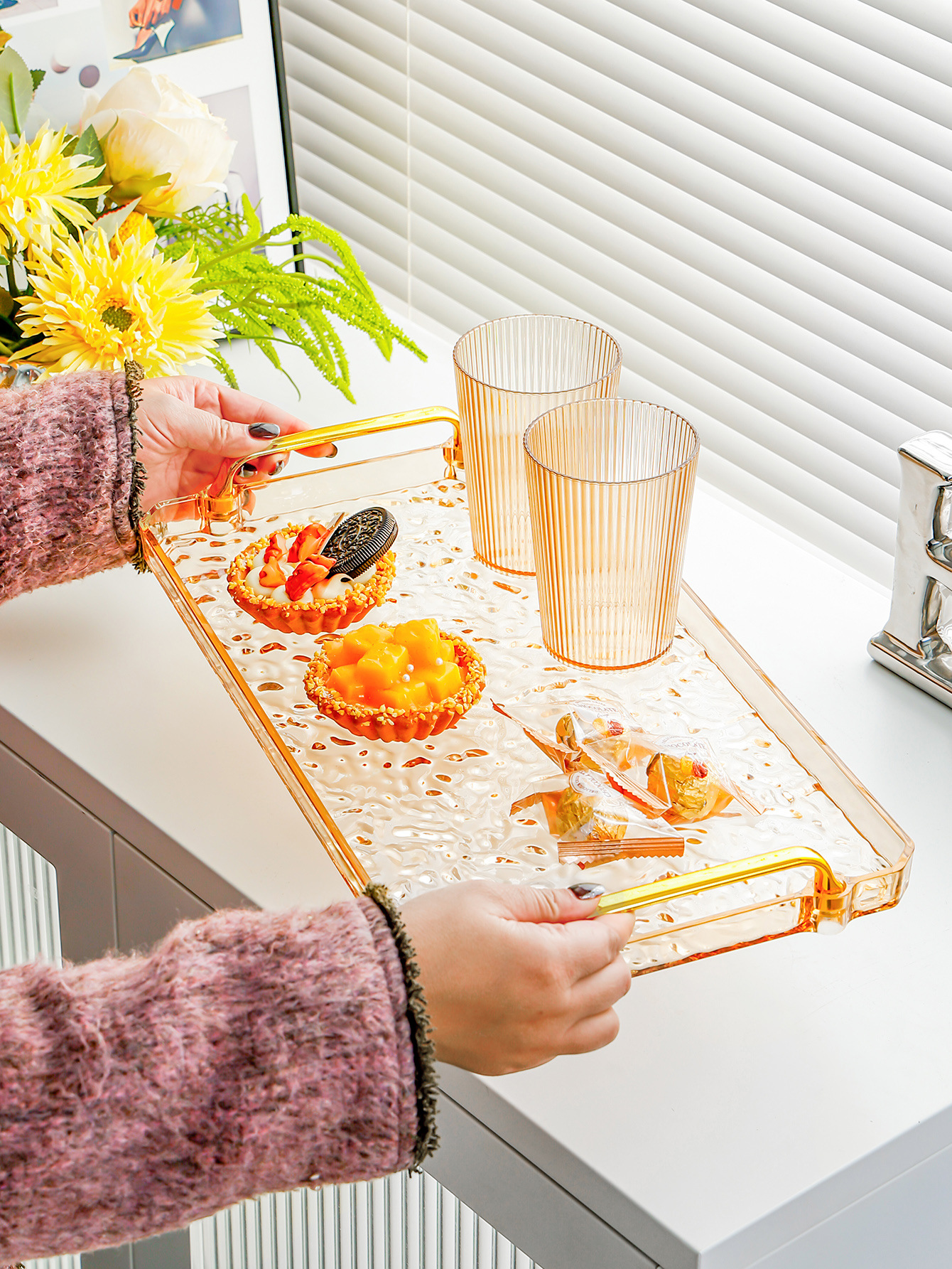 amber-water ripple plate [medium] gold handle