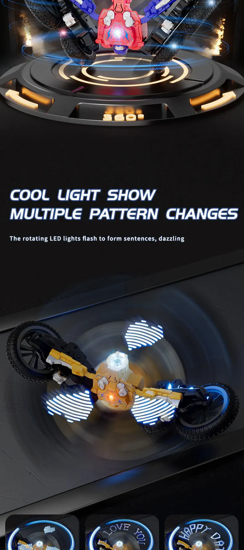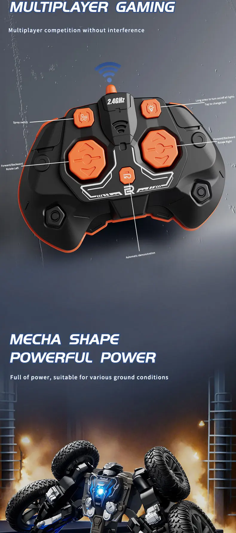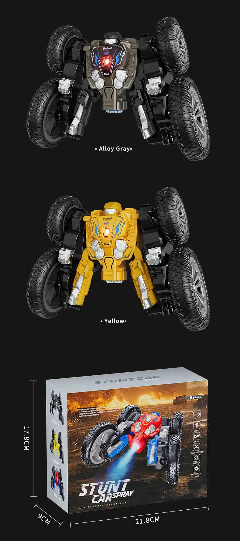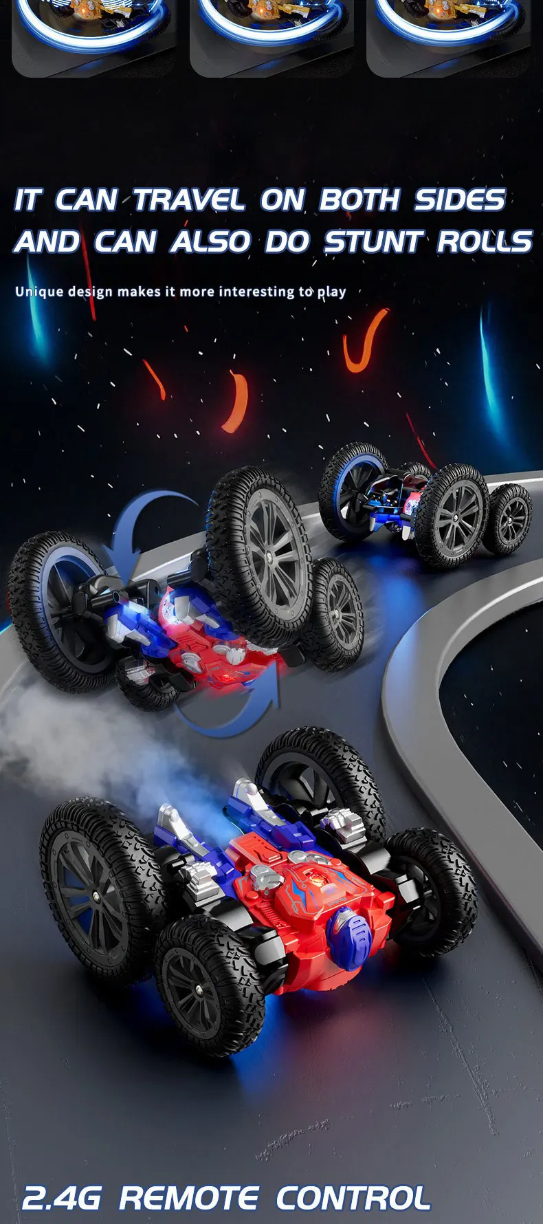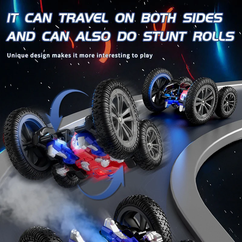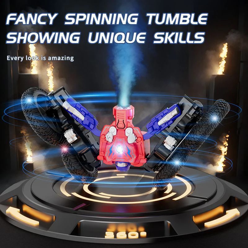 2.4G Stunt Remote Control Car 360 Degree Rotation with Cool Lights RC Car Spray Design Remote Control Car for Children's Toy