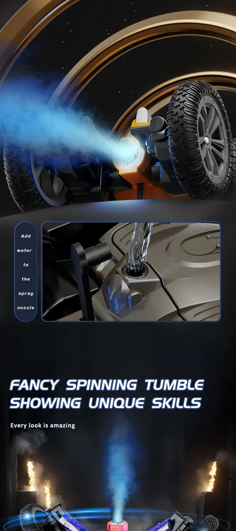 Subtitle light rotating spray flowering car stunt car (2.4G Battery Included)