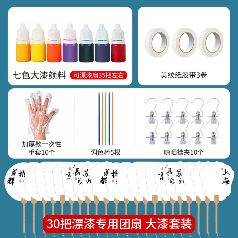 popular tourist city circular fan 30 packs [7 colors paint suit]]