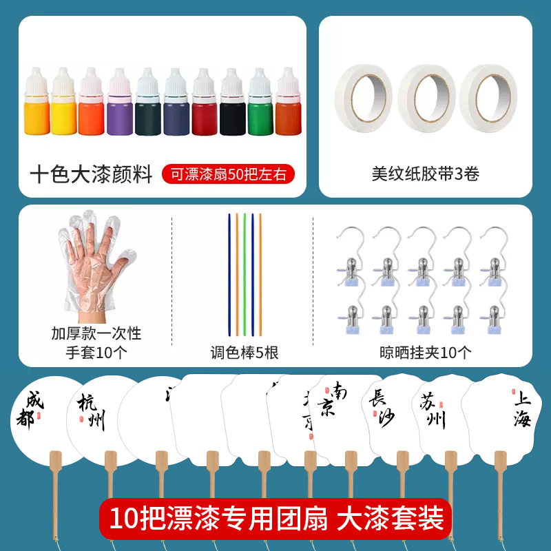 popular tourist city circular fan 10 packs [10 color pigment suit]]