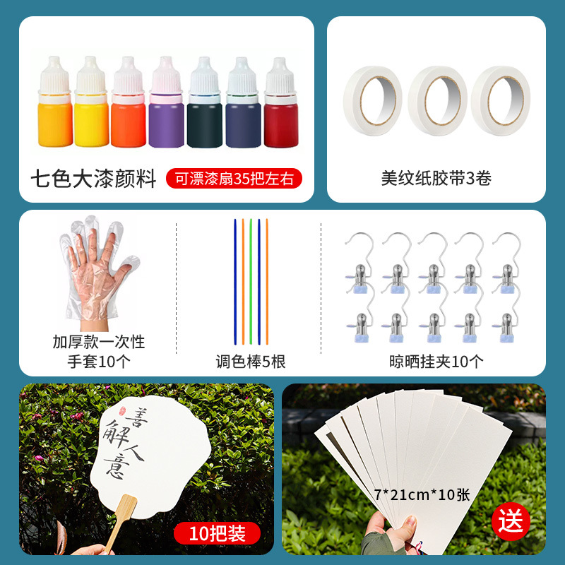 white paint fan [style mix and match] (10 packs contain 7-color paint paint suit)-