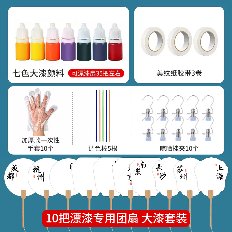 popular tourist city circular fan 30 packs [10 color pigment suit]]