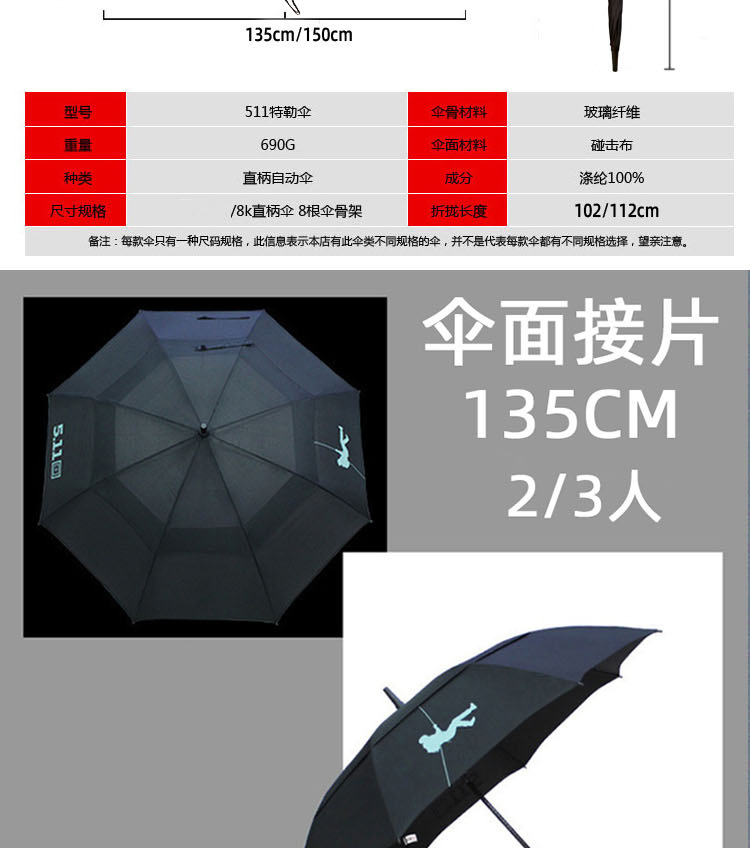 extra large❤long handle. 511 black-splicing wind resistant