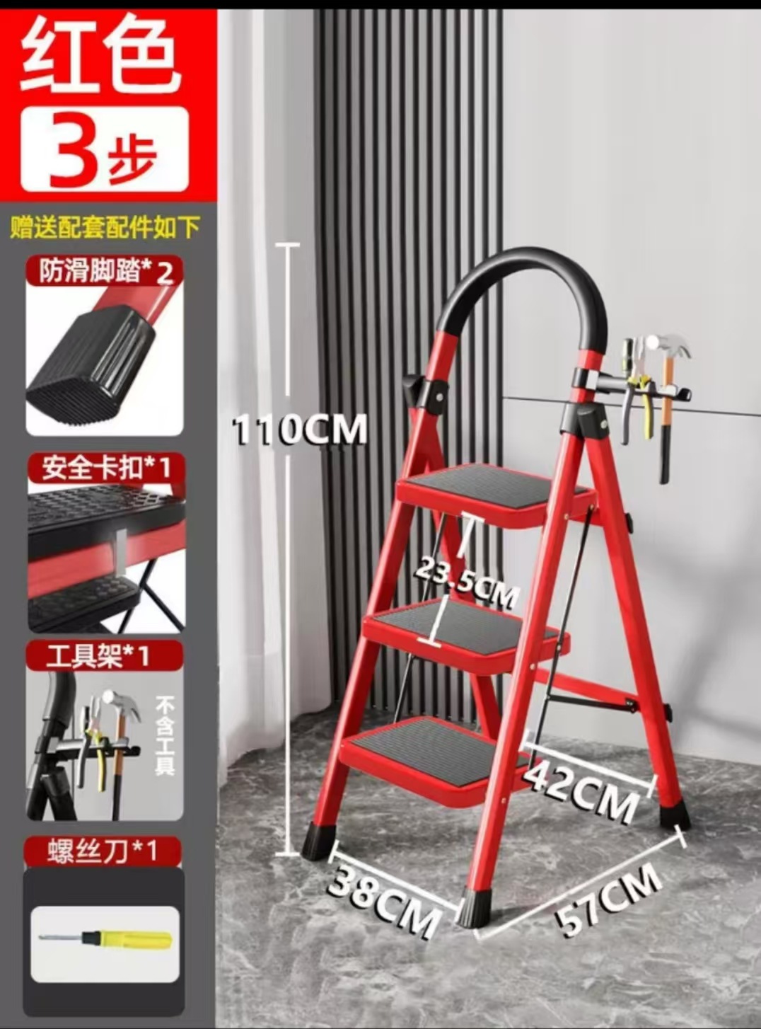 [upgrade thickening] three-step armrest red ladder, stable without shaking