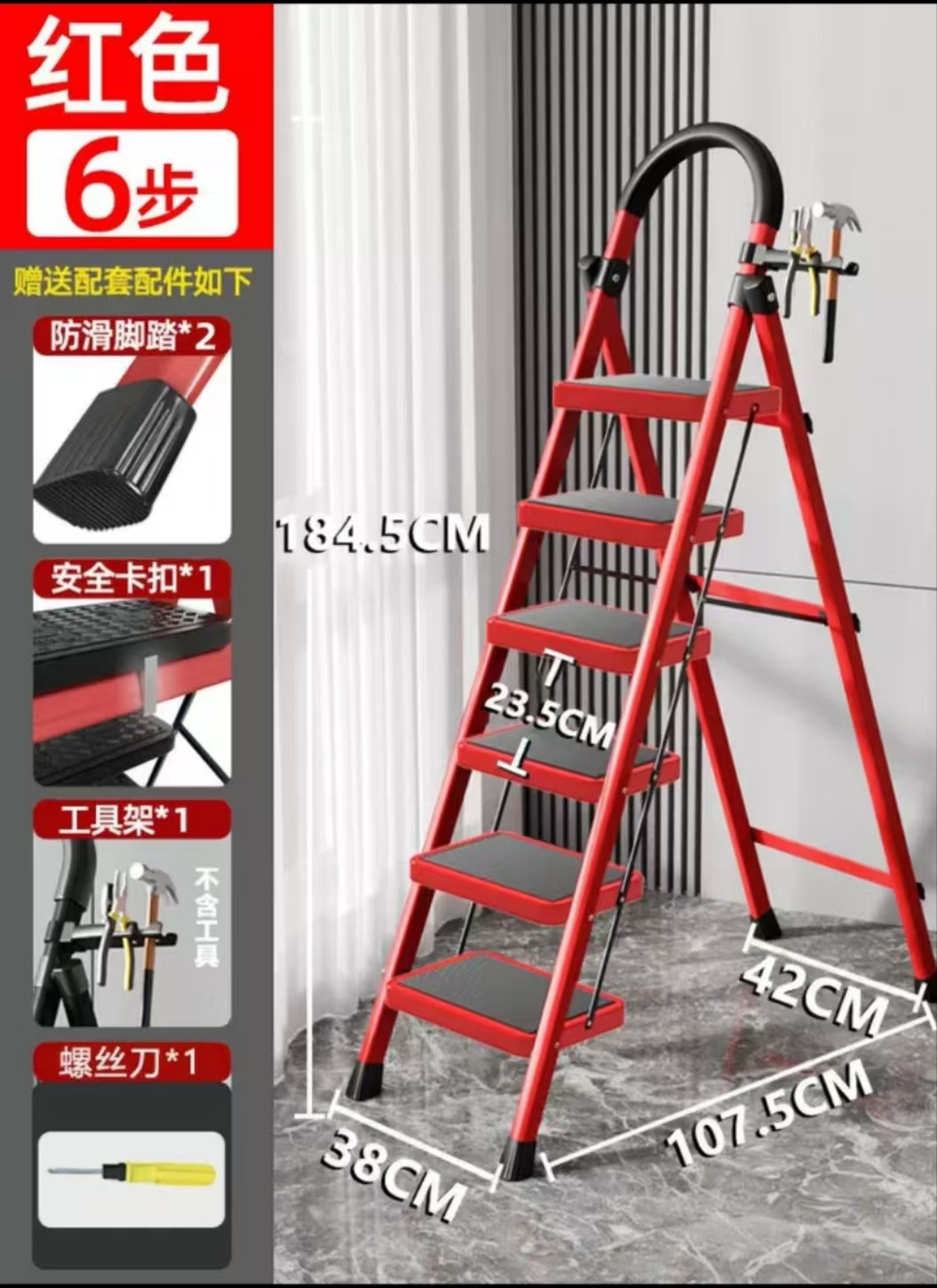 [upgrade thickening] five-step handrail red ladder? stable without shaking