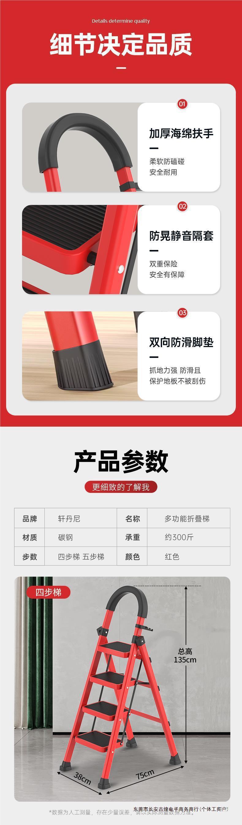 [upgrade thickening] four-step handrail red ladder? stable without shaking