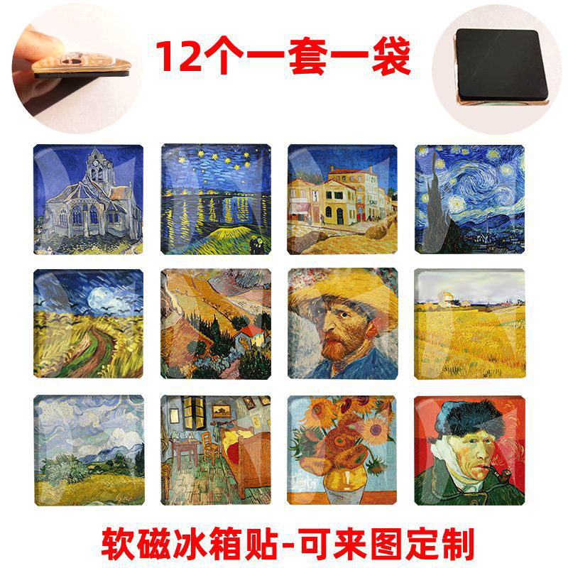 50 mm square refridgerator magnets 12 sets (famous painting)