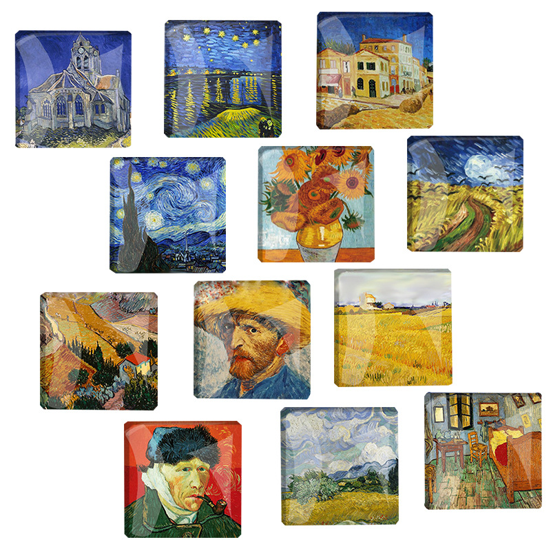 25 mm square refridgerator magnets 12 sets (famous painting)