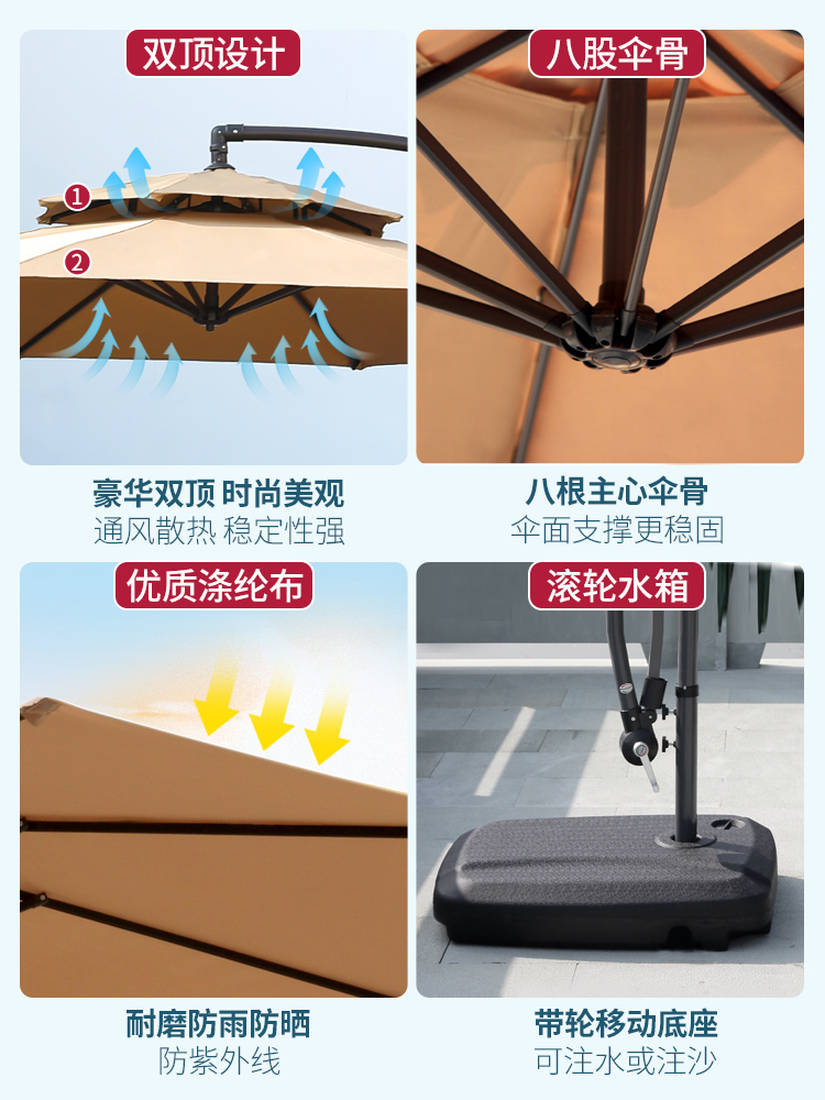 [table and chair package] double-top 2.7 m umbrella + water tank + special round table 80cm +4 chairs