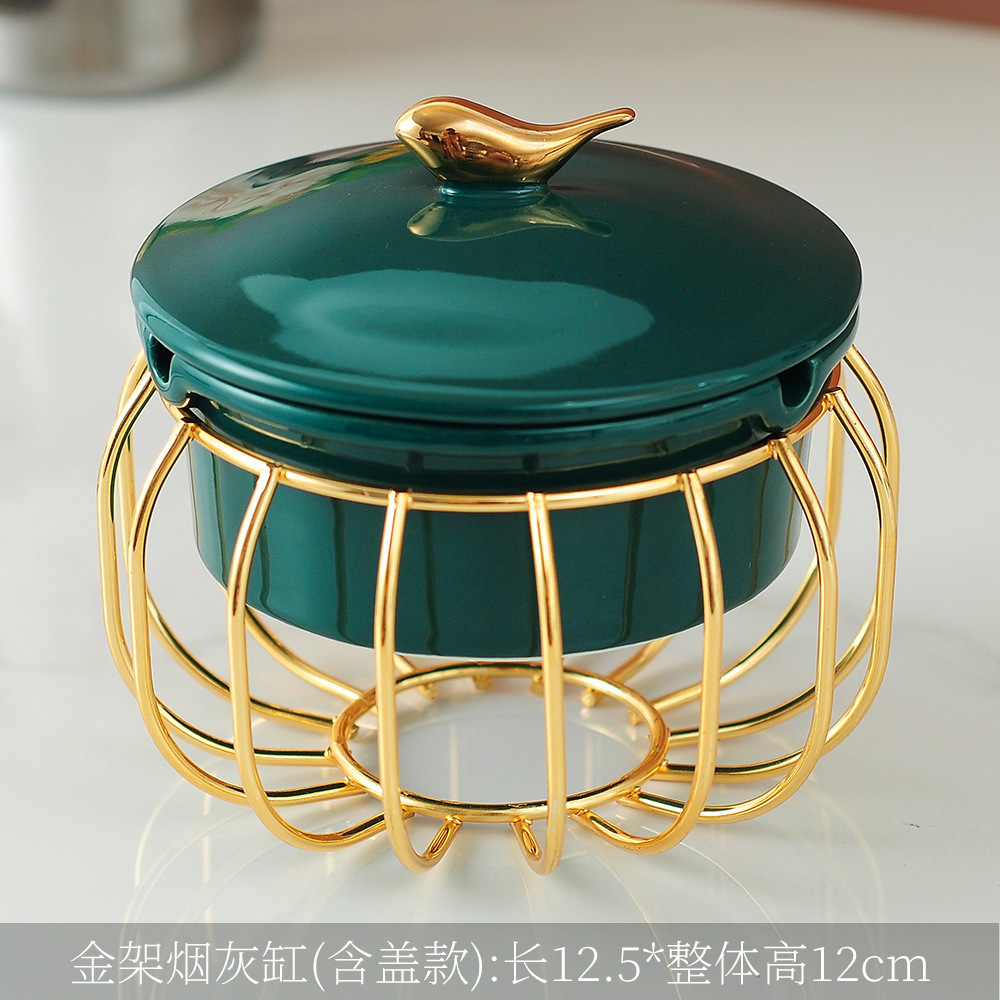 green bird cover ashtray + iron frame