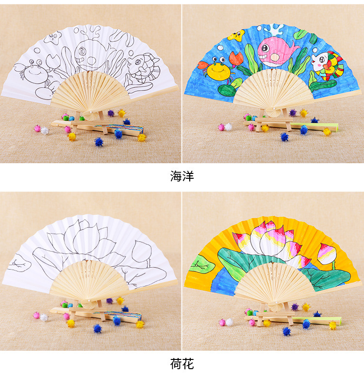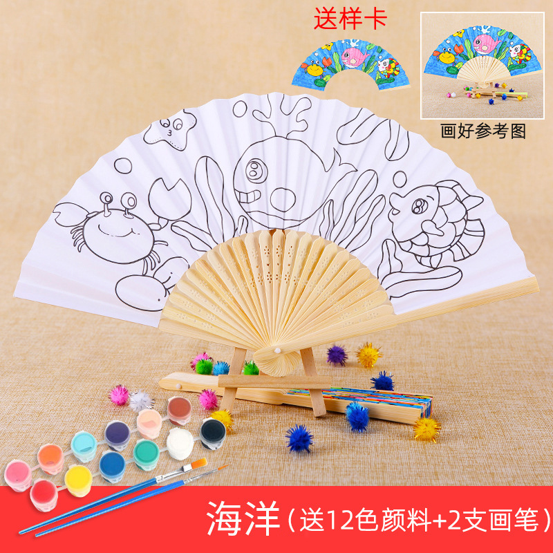 color filling folding fan-ocean send 12 colors paint +2 pens