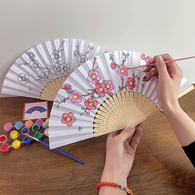 color filling folding fan-plum blossom send 12 color pigment +2 pens