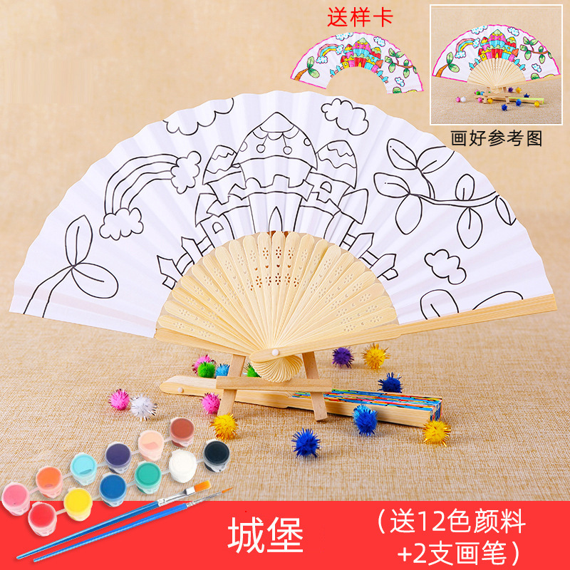 color filling folding fan-castle send 12 color paint +2 pens