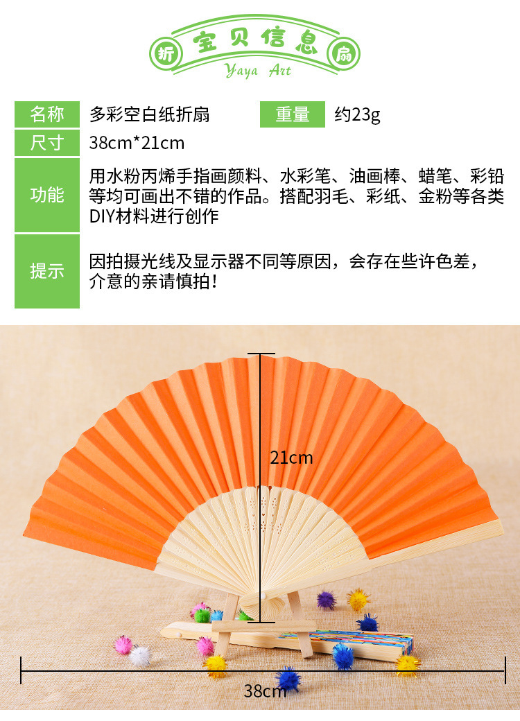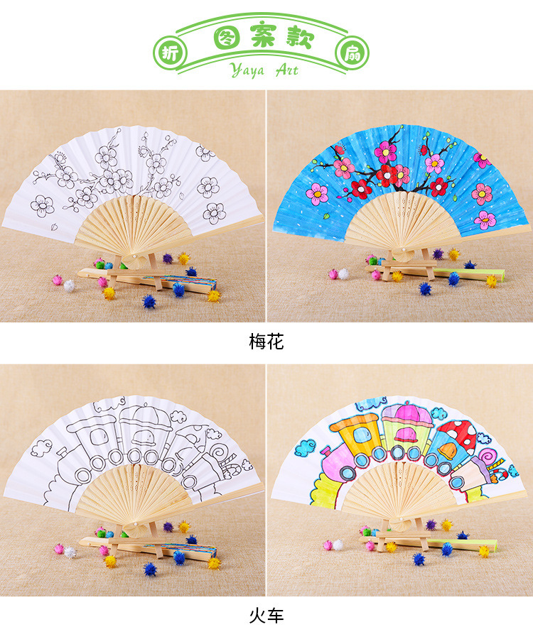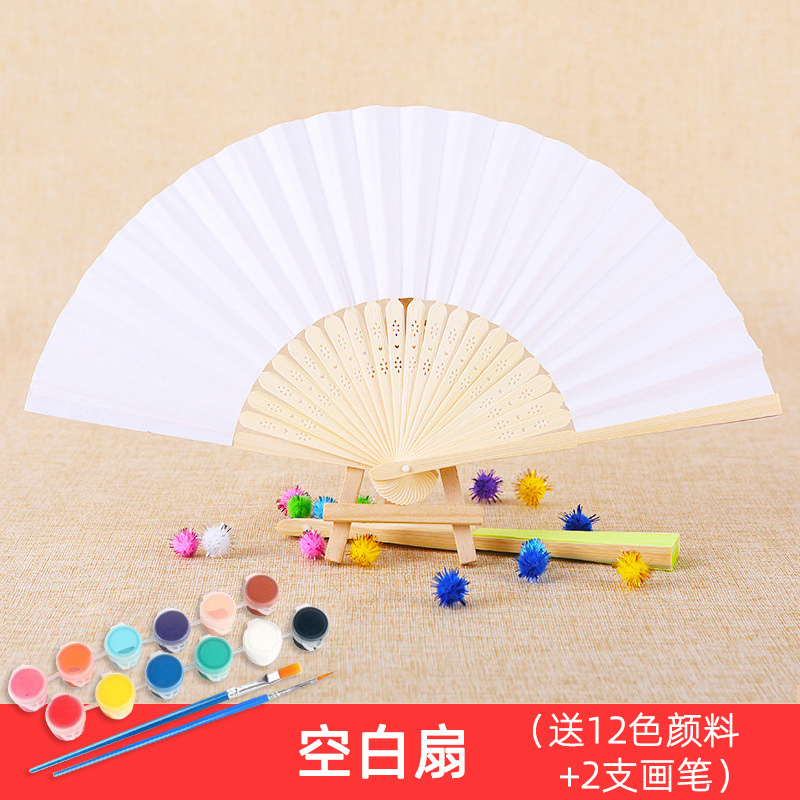 folding fan-blank fan get 12 colors paint +2 pens