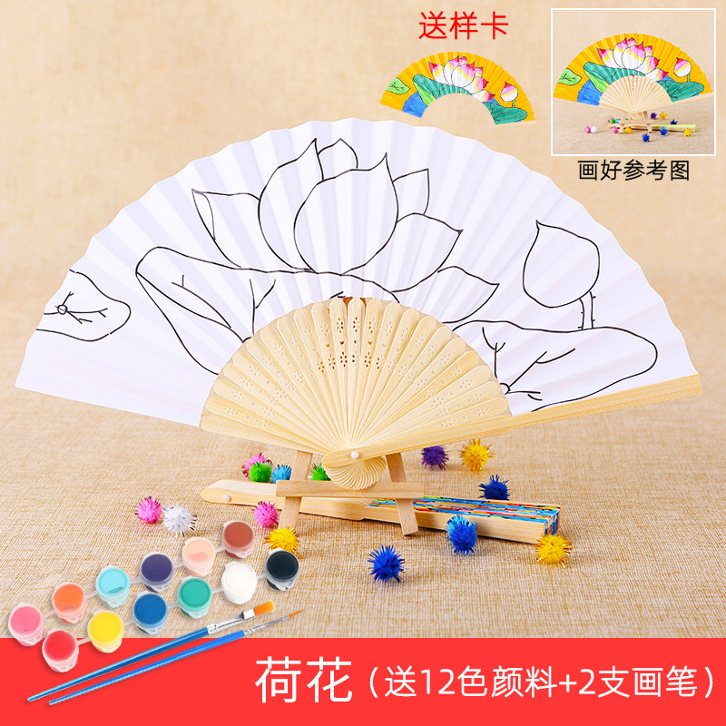 color filling folding fan-lotus to send 12 color paint +2 pens