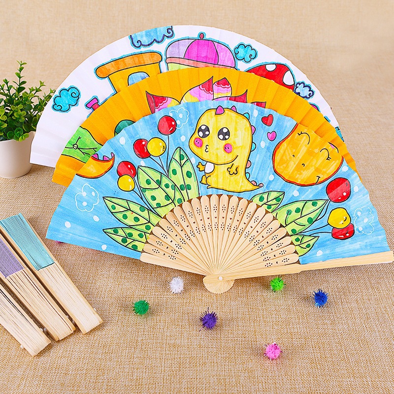 color filling folding fan-train to send 12 color paint +2 pens