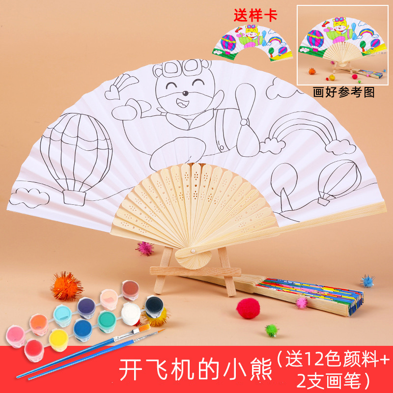 color filling folding fan-airplane bear send 12 color paint +2 pens