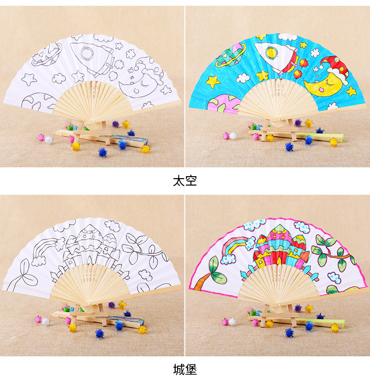 color filling folding fan-space send 12 colors paint +2 pens