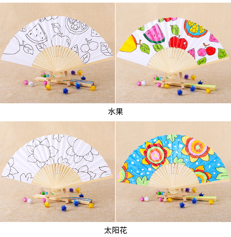 color filling folding fan-fruit send 12 color paint +2 pens