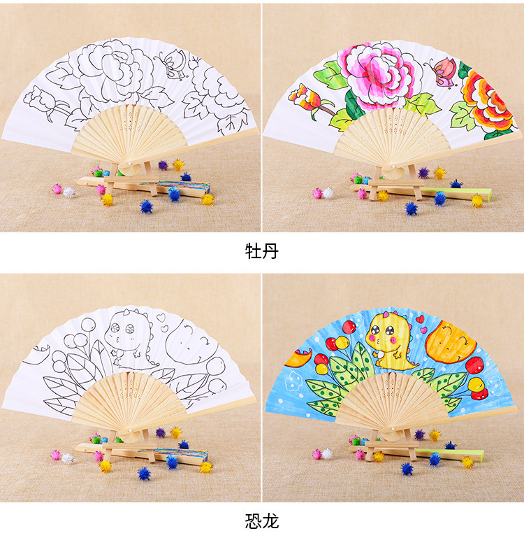 color filling folding fan-peony send 12 colors paint +2 pens