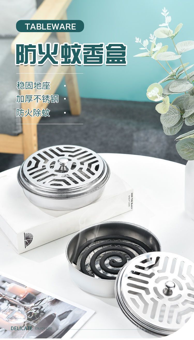 fireproof mosquito smudge box household stainless steel mosquito coil mosquito box with lid mosquito repellent incense shelf creative mosquito coil holder mosquito repellent burner