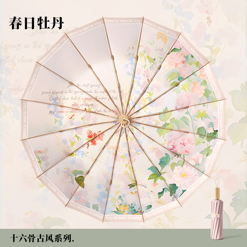 spring peony-16 bones three fold color plastic