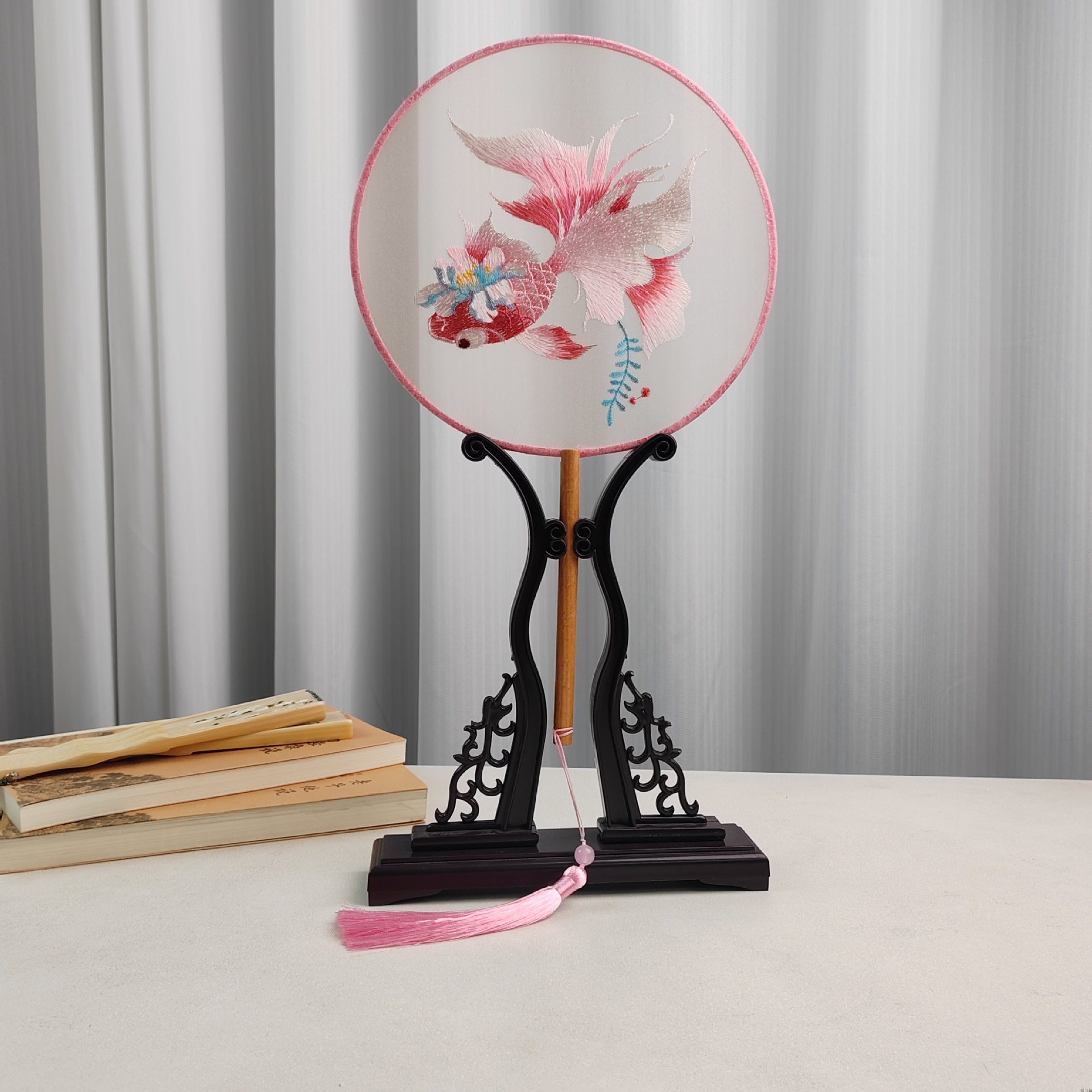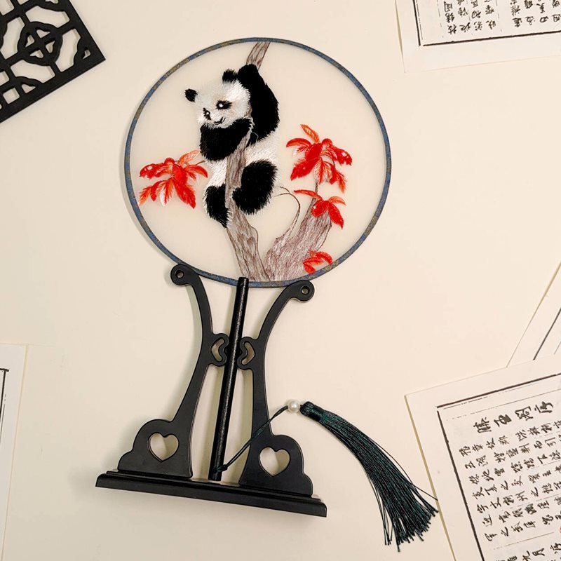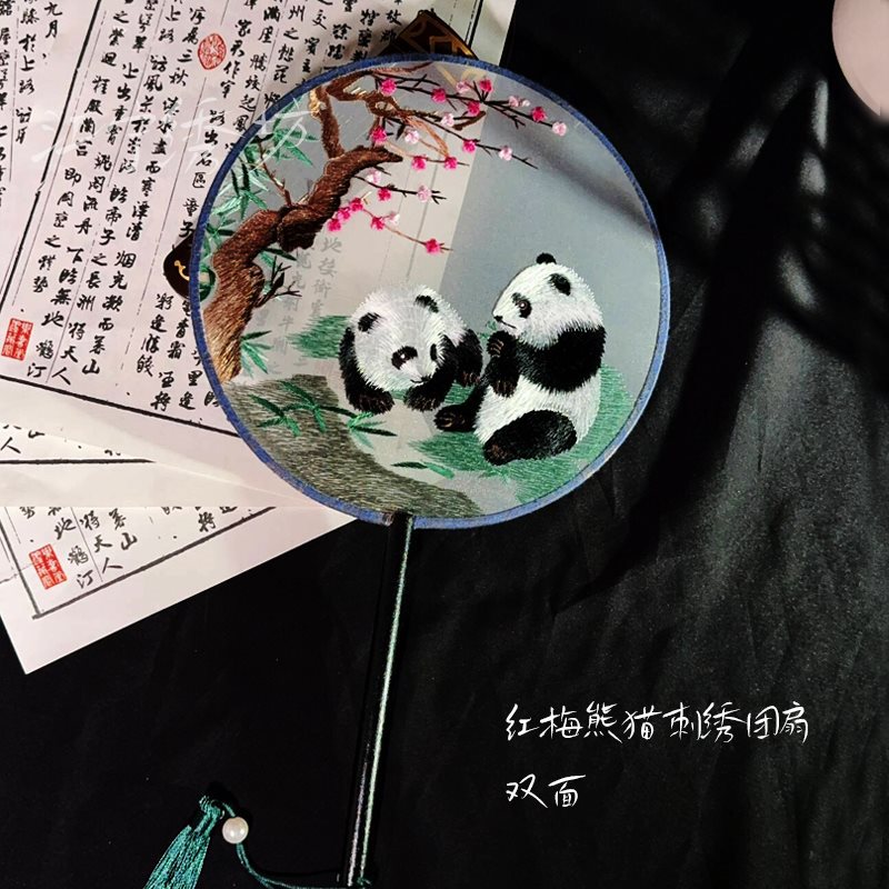 circular fan red plum panda + small fan frame