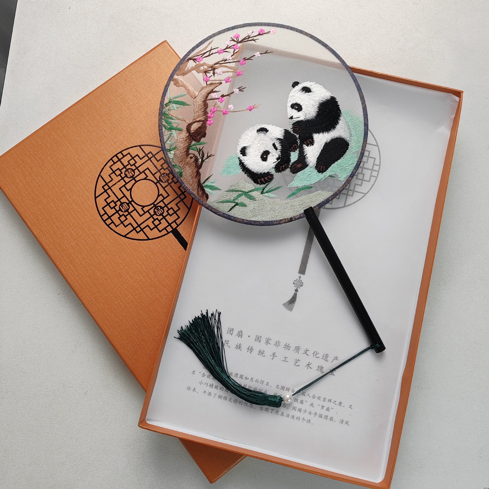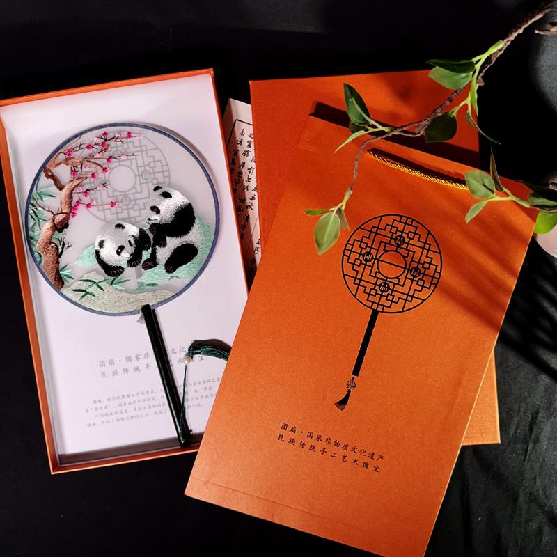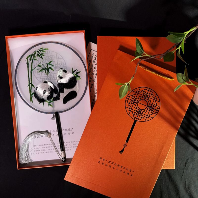 circular fan bamboo panda + yellow gift box