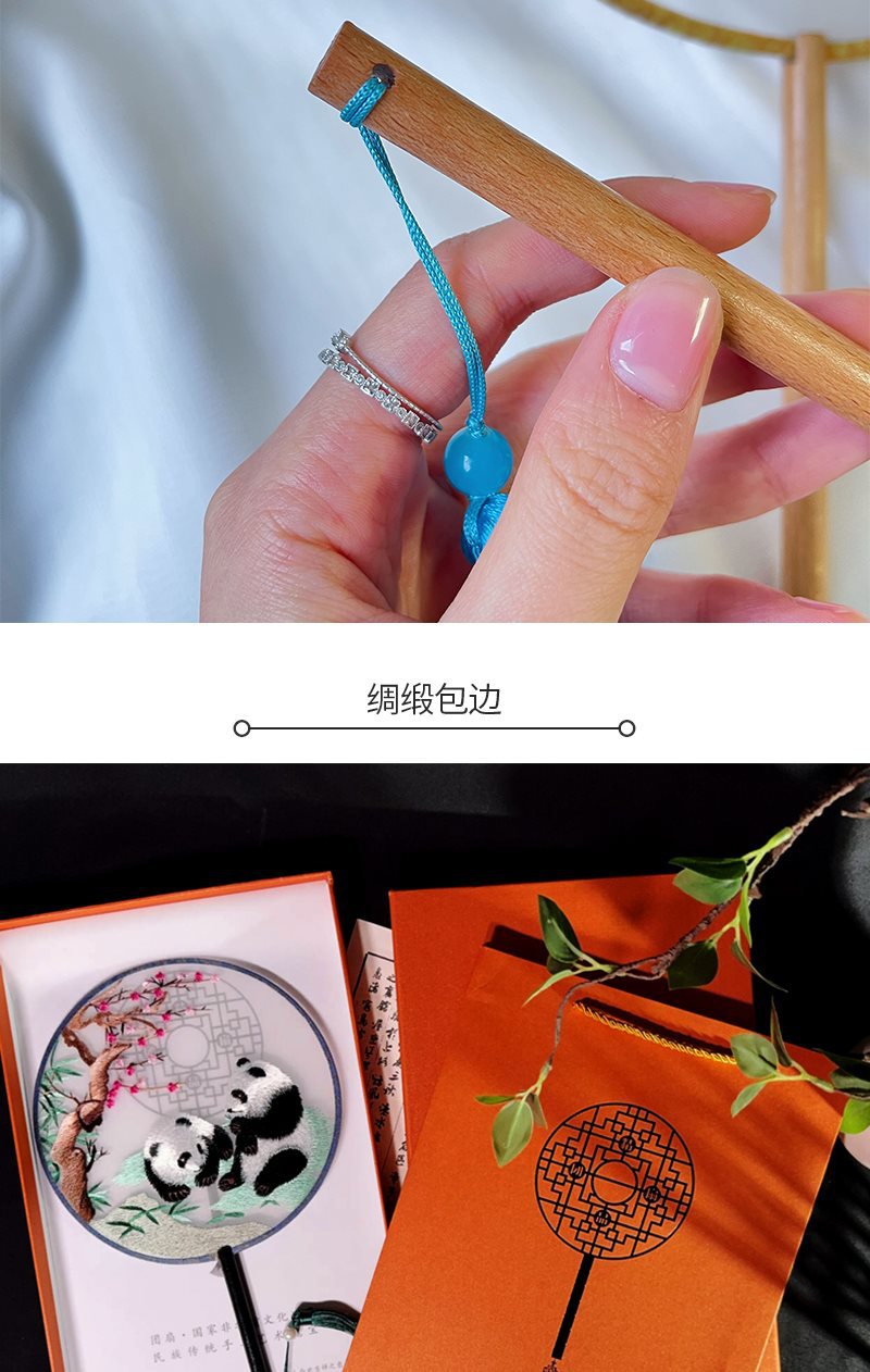 circular fan bamboo panda + small fan frame