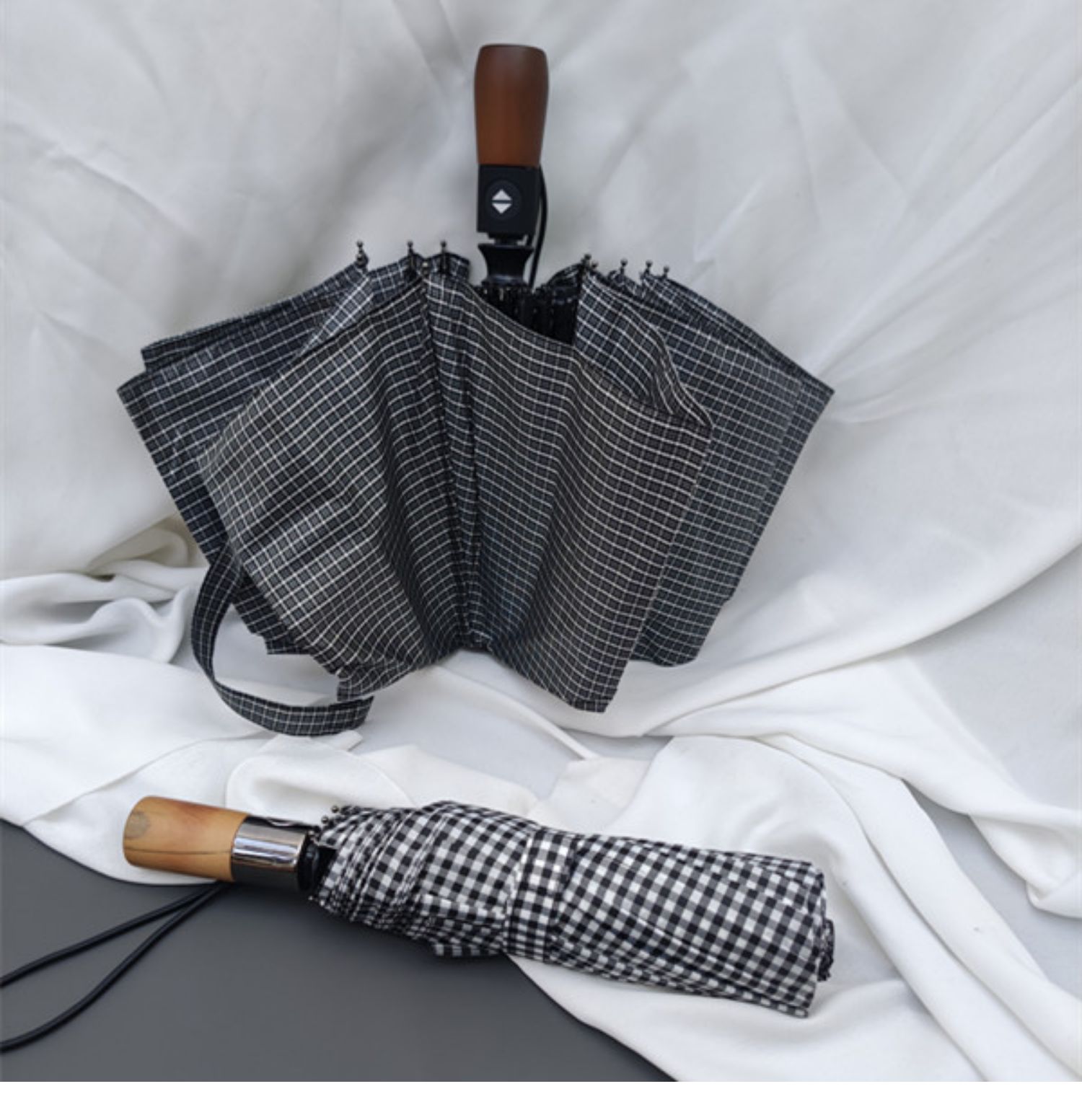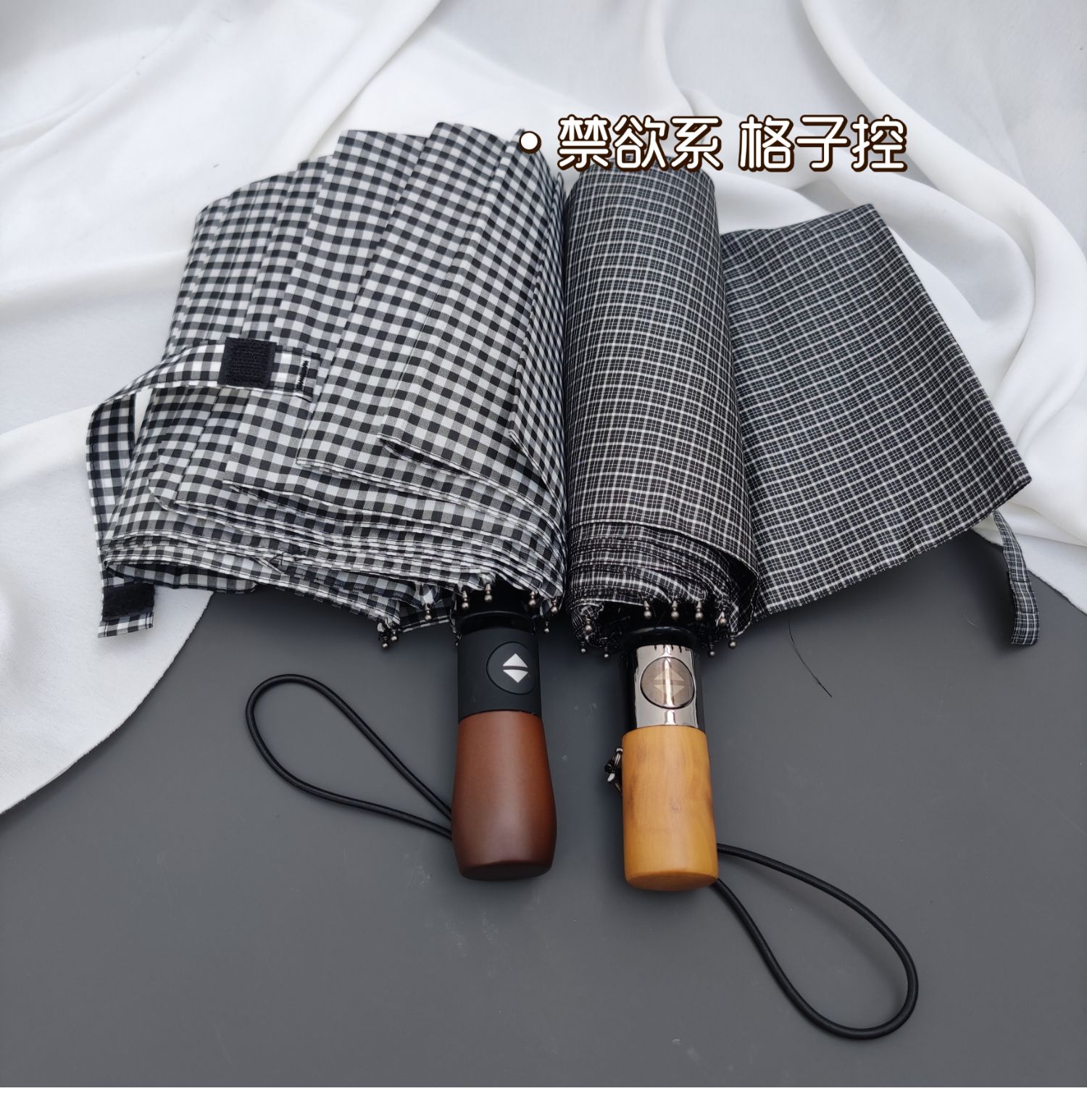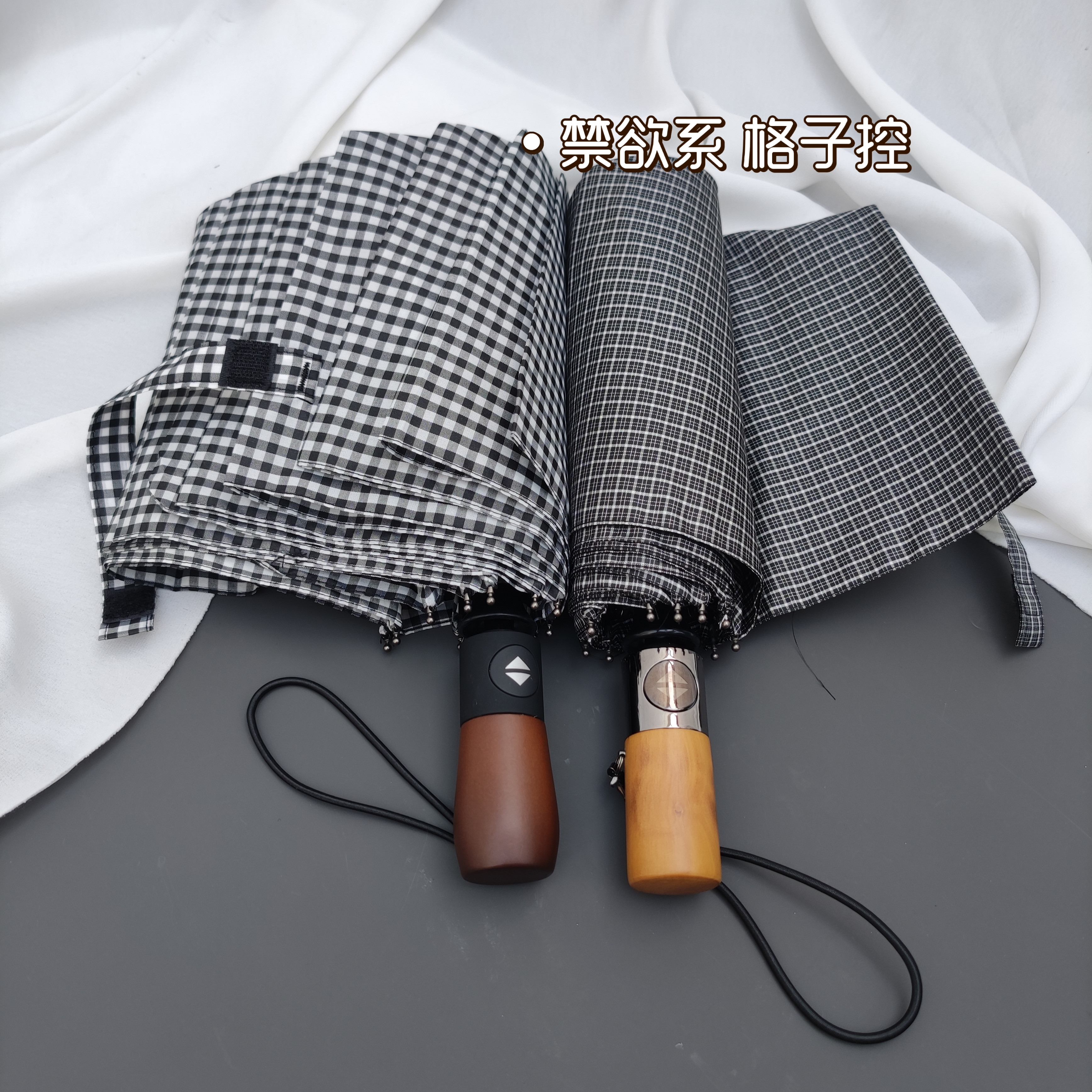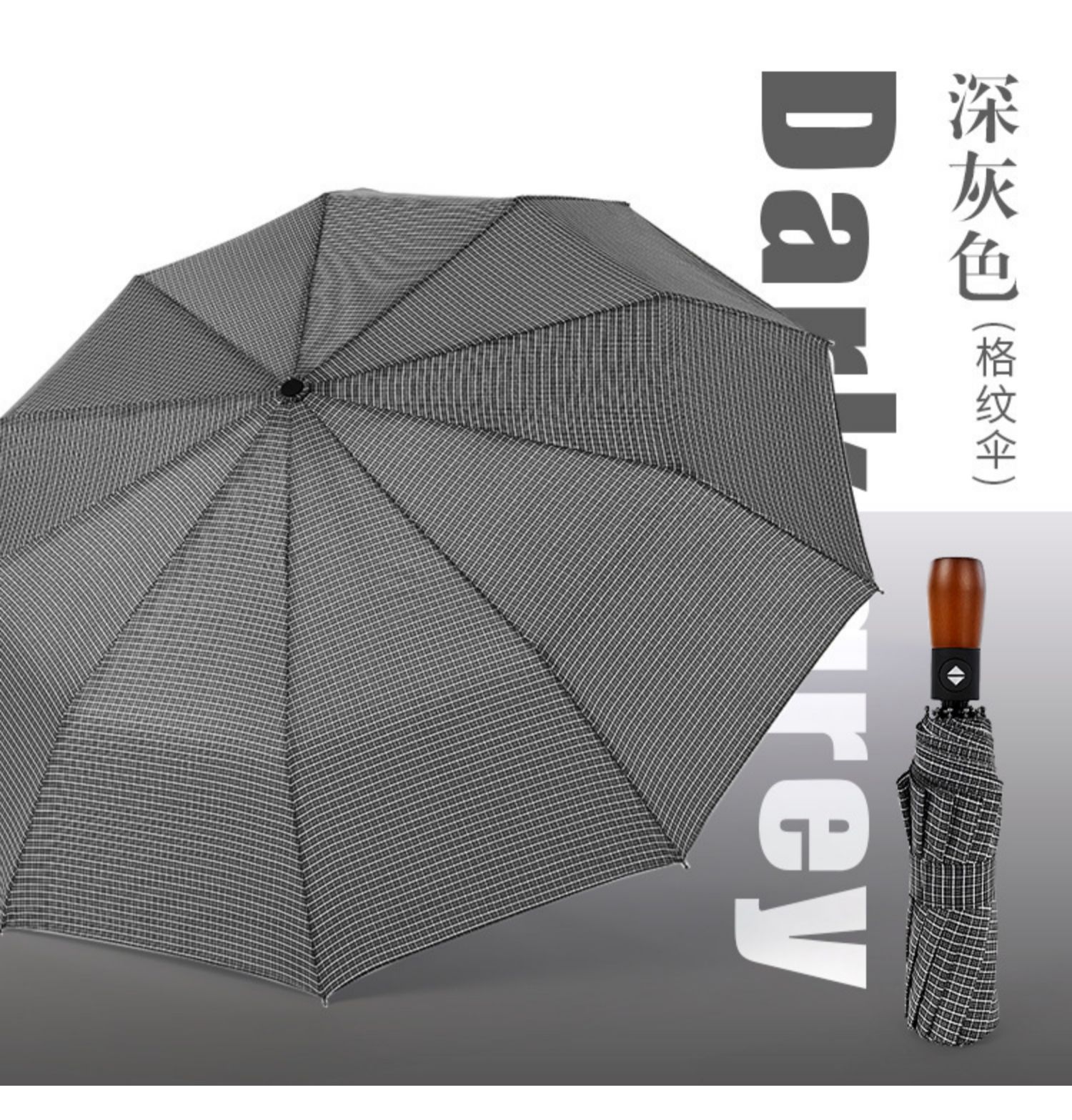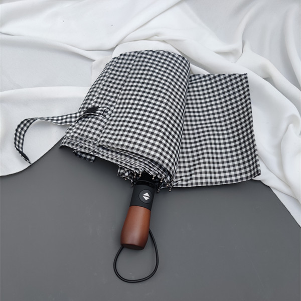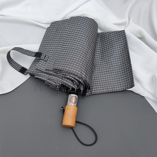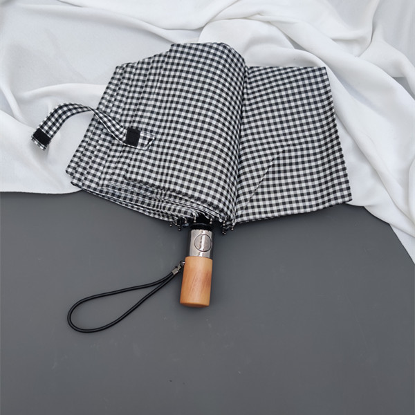 dark gray plaid frosted + wooden handle