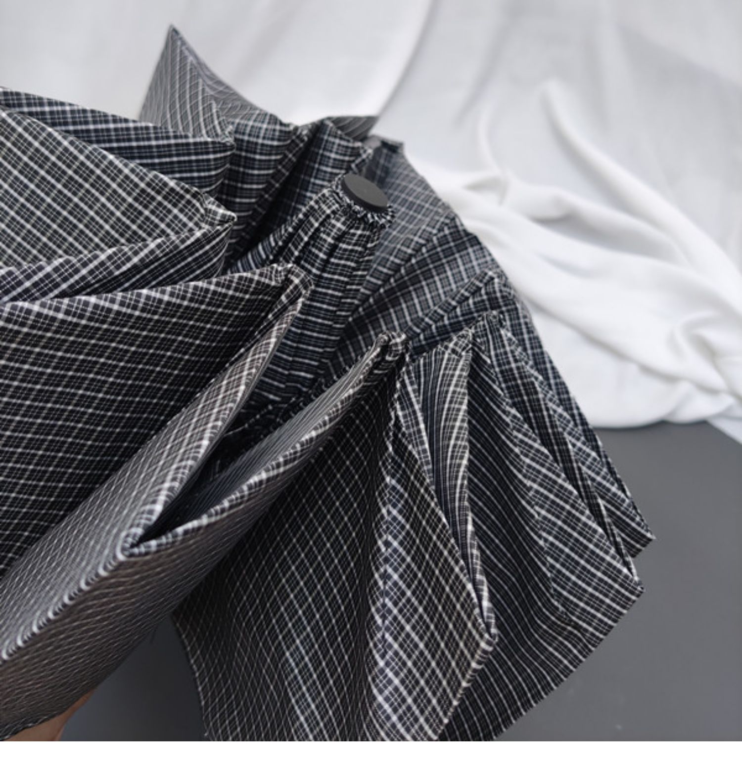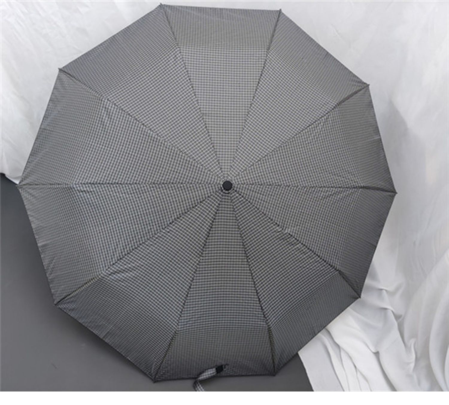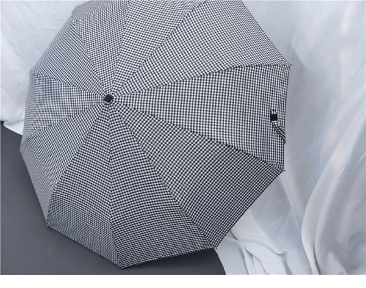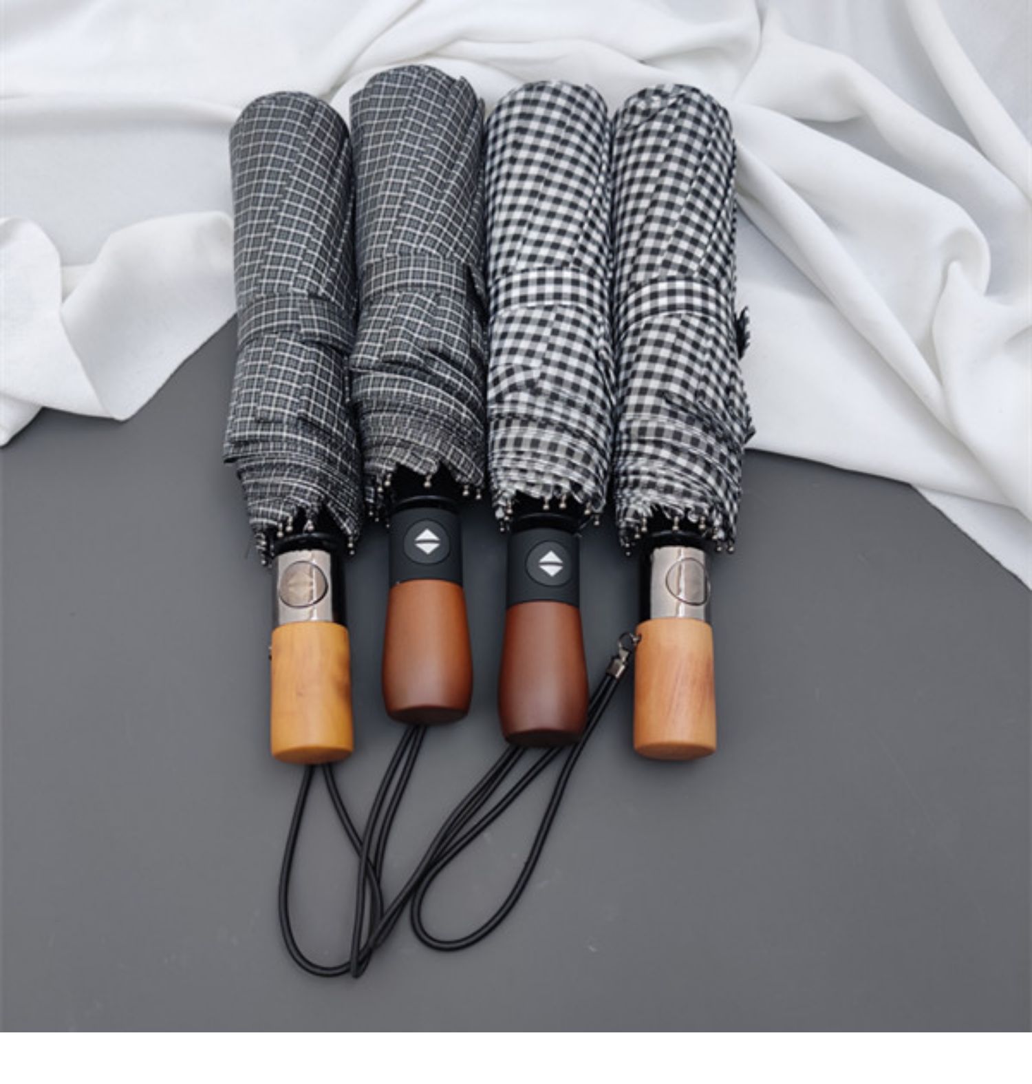 dark gray plaid frosted + wooden handle