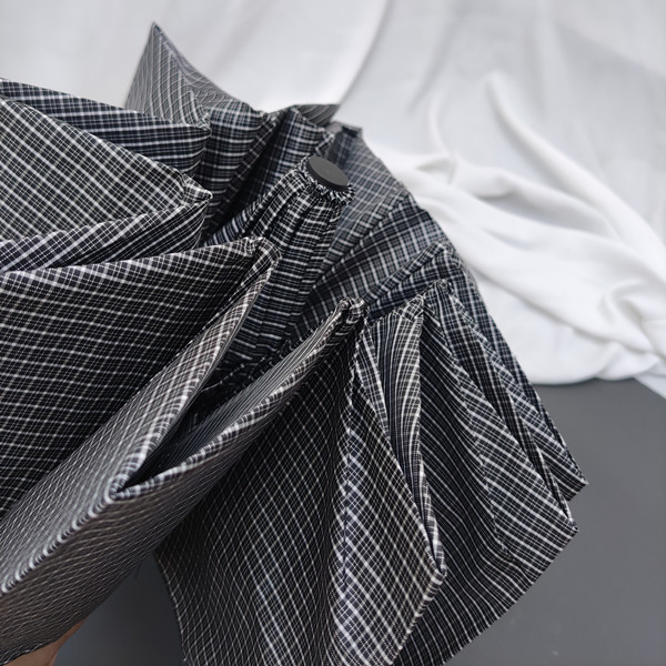 black and white plaid metal + wooden handle